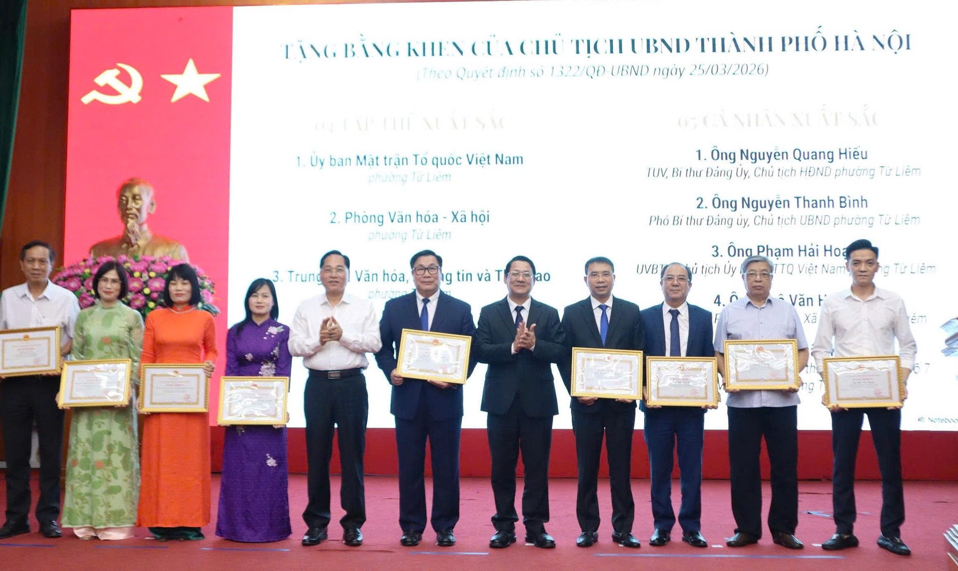 Các tập thể, cá nhân có thành tích trong công tác bầu cử nhận Bằng khen của Chủ tịch UBND TP Hà Nội. Ảnh: Trần Hòa
