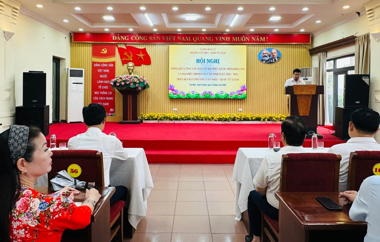 Ủy ban Bầu cử phường Văn Miếu - Quốc Tử Giám tổ chức Hội nghị tổng kết cuộc bầu cử đại biểu Quốc hội khóa XVI và đại biểu HĐND các cấp nhiệm kỳ 2026-2031. Ảnh: Quyên An.