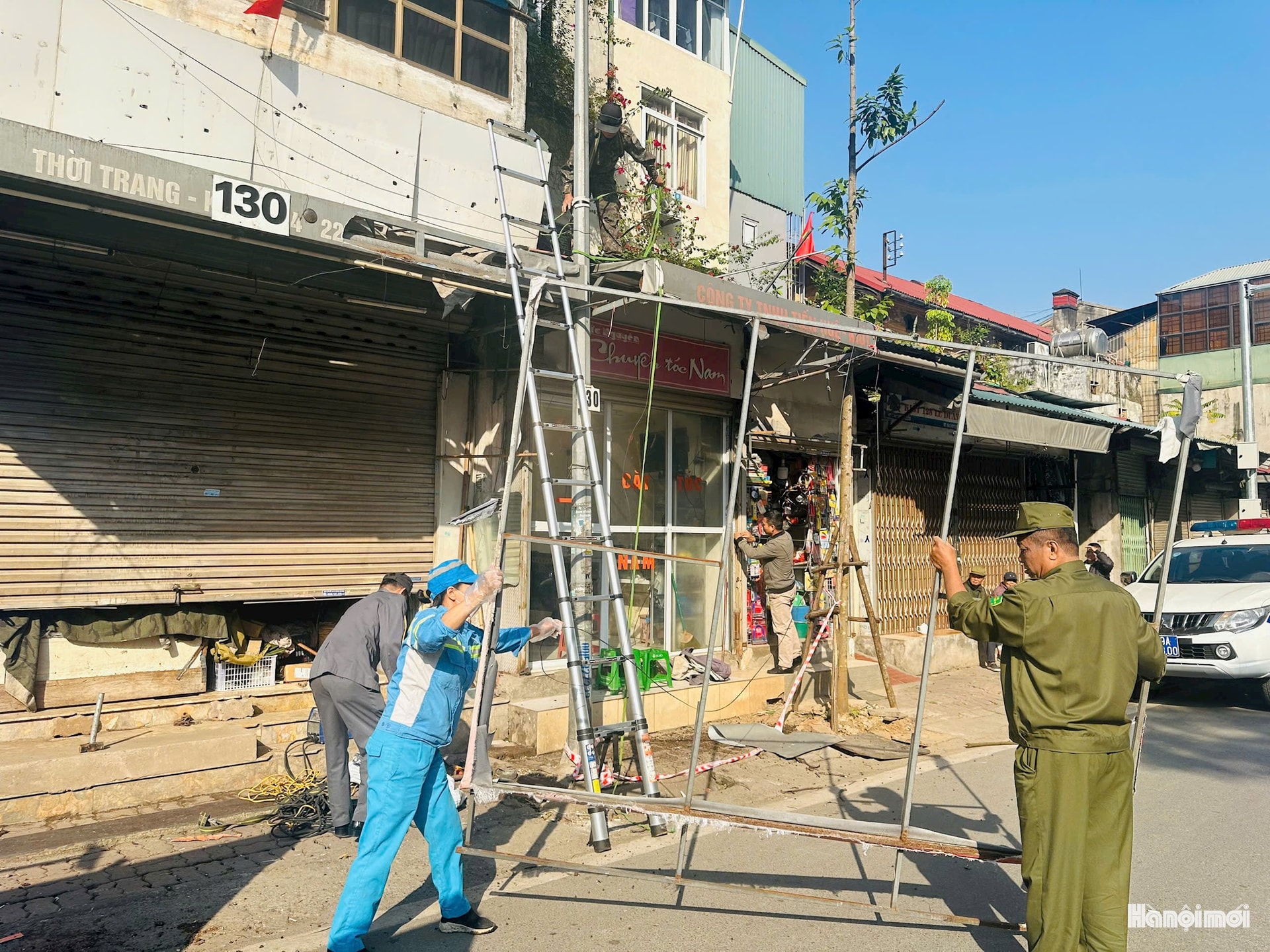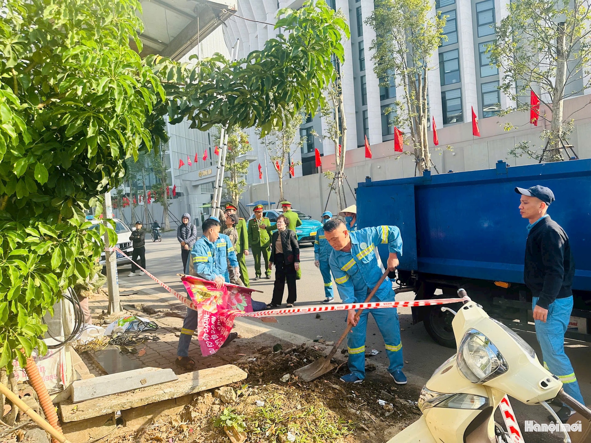 Công nhân vệ sinh môi trường phối hợp dọn dẹp ngay sau khi lực lượng chức năng xử lý vi phạm. Ảnh: Bảo Lâm