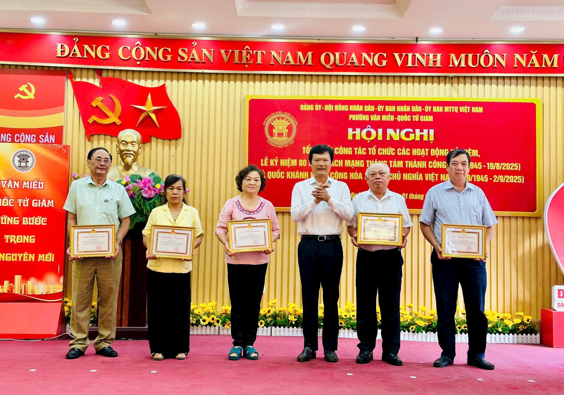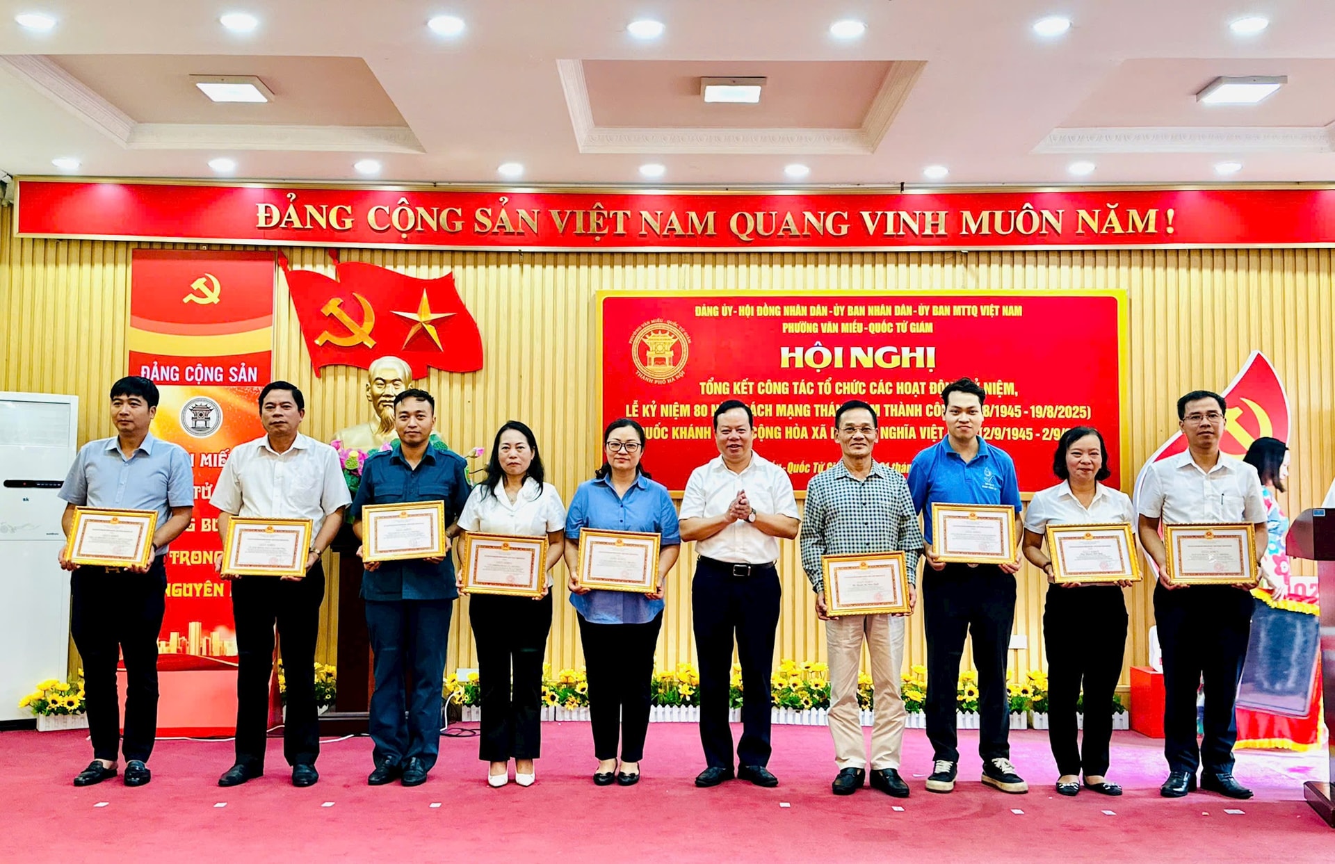 Tại hội nghị, phường Văn Miếu - Quốc Tử Giám đã khen thưởng 48 tập thể và 144 cá nhân có thành tích xuất sắc trong công tác tổ chức các hoạt động kỷ niệm Quốc khánh 2-9.