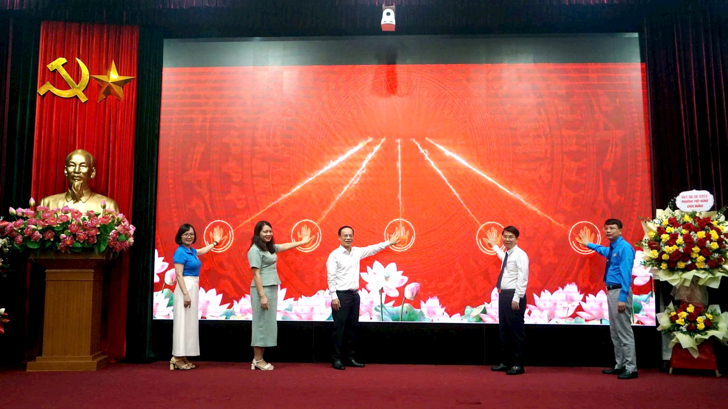 Lãnh đạo phường Việt Hưng nhấn nút phát động Tháng hành động về ATVSLĐ và Tháng Công nhân năm 2026. Ảnh: B.Duy