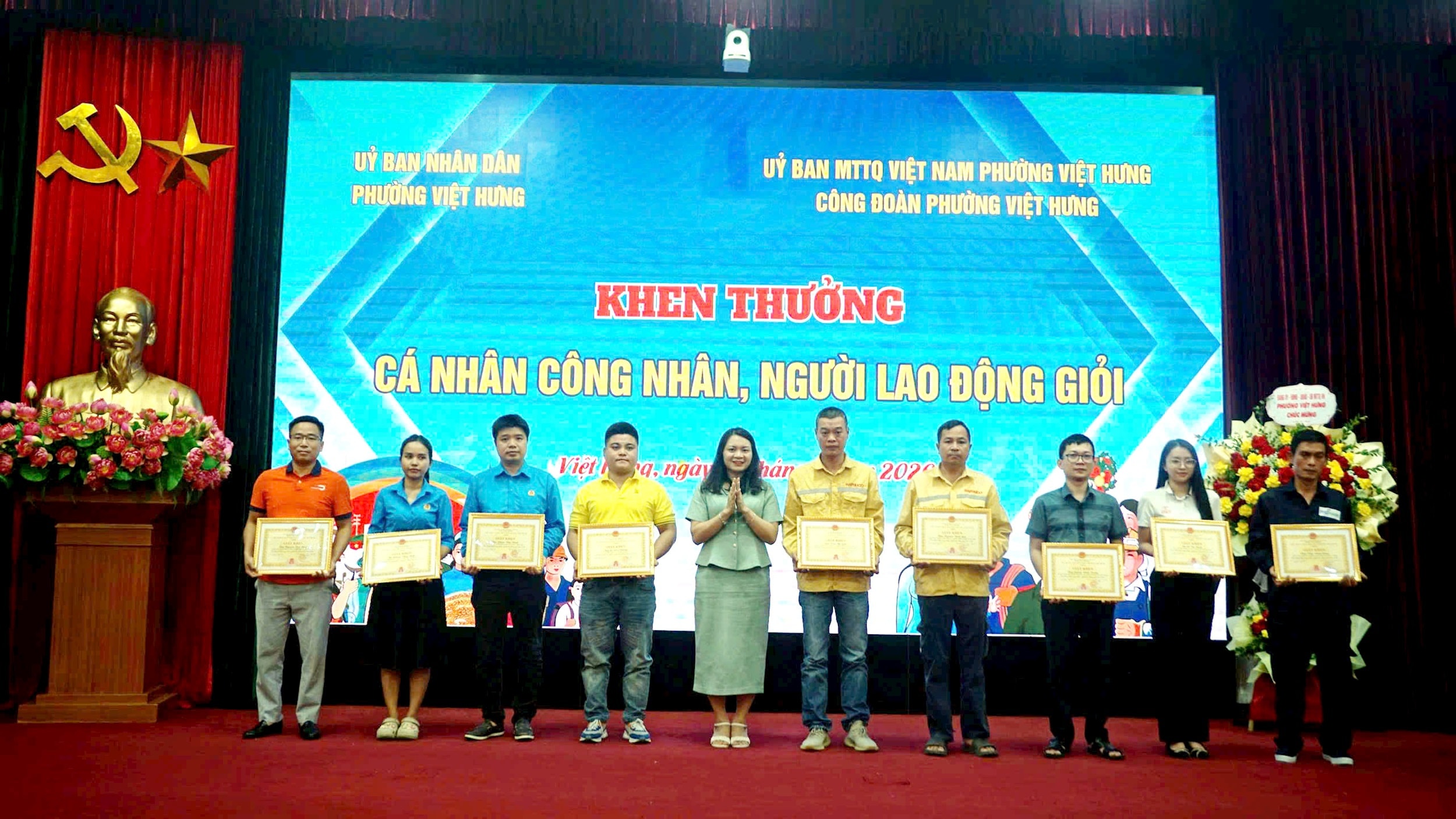 Phát biểu tại buổi lễ, Chủ tịch Công đoàn phường Việt Hưng Vũ Hoàng Long đề nghị các Công đoàn cơ sở xây dựng chương trình hành động cụ thể, thiết thực, phù hợp với đặc thù của từng đơn vị; tiếp tục đổi mới phương thức hoạt động công đoàn theo hướng thiết thực, hiệu quả, đi sâu, đi sát cơ sở; thực hiện tốt phương châm “Định kỳ đối thoại; chủ động, linh hoạt thương lượng; chăm lo, bảo vệ thực chất”. Đồng thời, đề nghị cấp ủy, người đứng đầu các đơn vị, doanh nghiệp tăng cường gặp gỡ, đối thoại với công nhân, kịp thời giải quyết những vấn đề người lao động quan tâm, nhất là về điều kiện làm việc, đời sống và các hoạt động văn hóa, tinh thần.