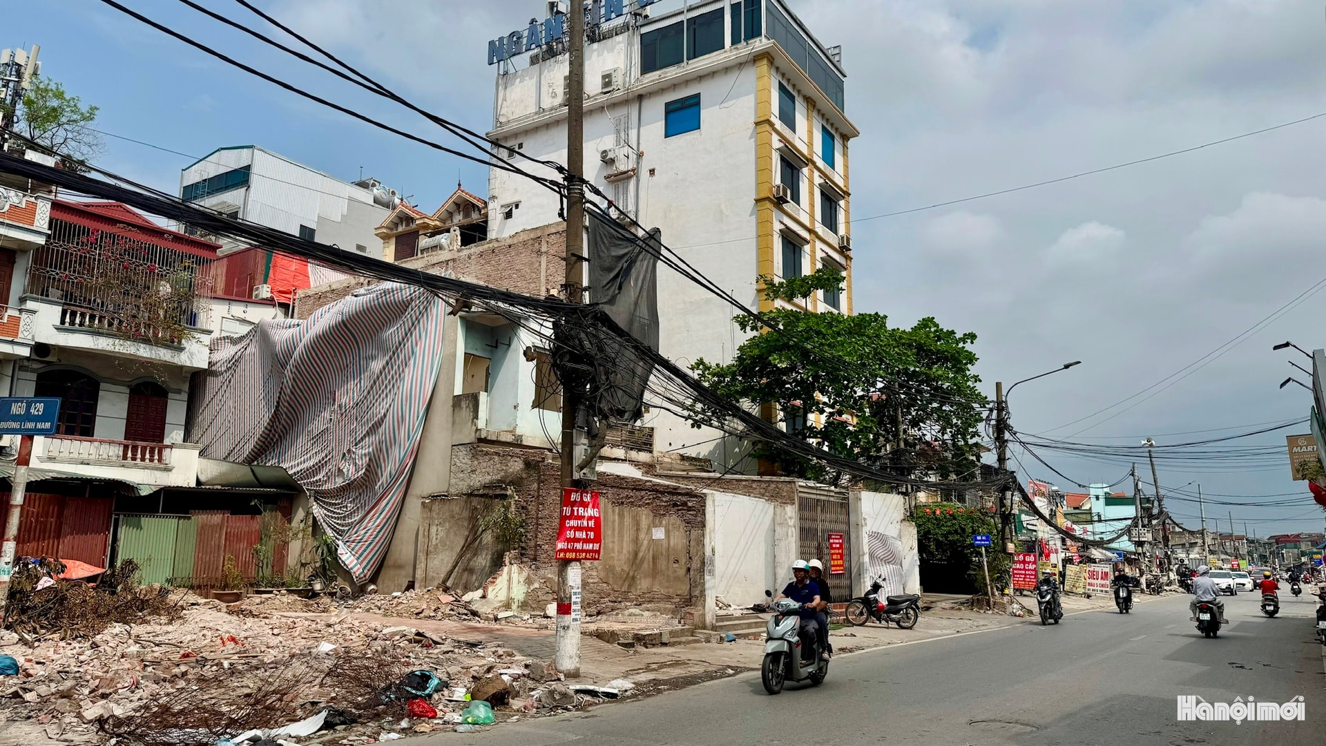 Hiện nay tuyến đường Lĩnh Nam đoạn thuộc phường Vĩnh Hưng chỉ còn 3/253 hộ chưa thực hiện bàn giao. Ảnh: Duy Anh