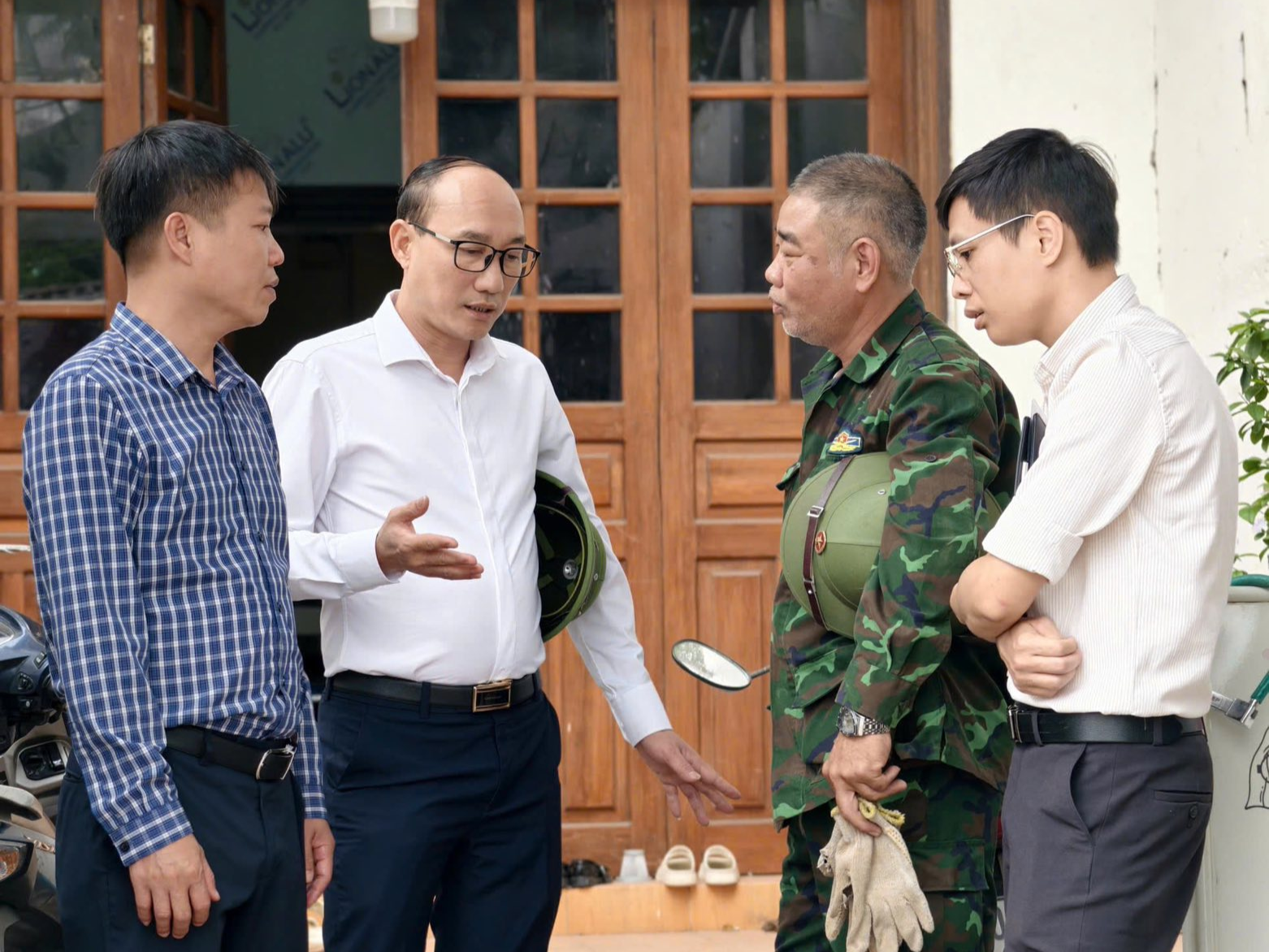 Lãnh đạo UBND phường Vĩnh Hưng đi tuyên truyền, vận động các hộ dân bàn giao mặt bằng. Ảnh: PLN