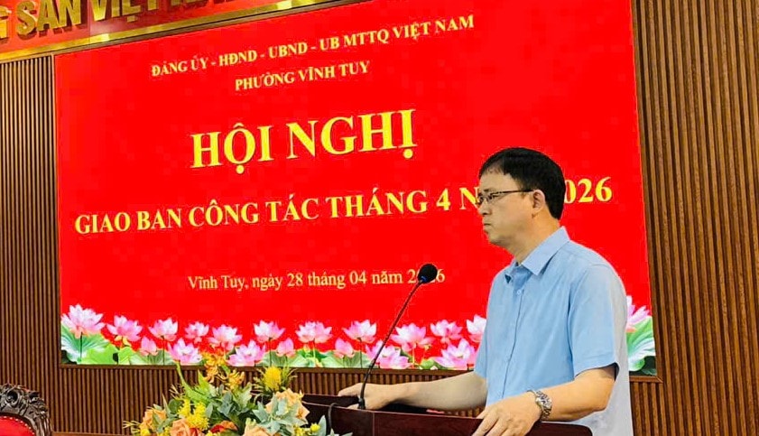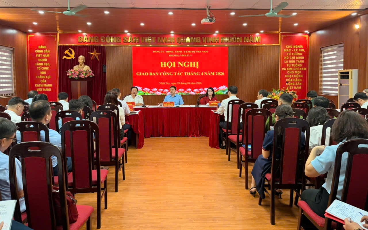 Quang cảnh Hội nghị giao ban công tác tháng 4-2026 tại phường Vĩnh Tuy. Ảnh: PV