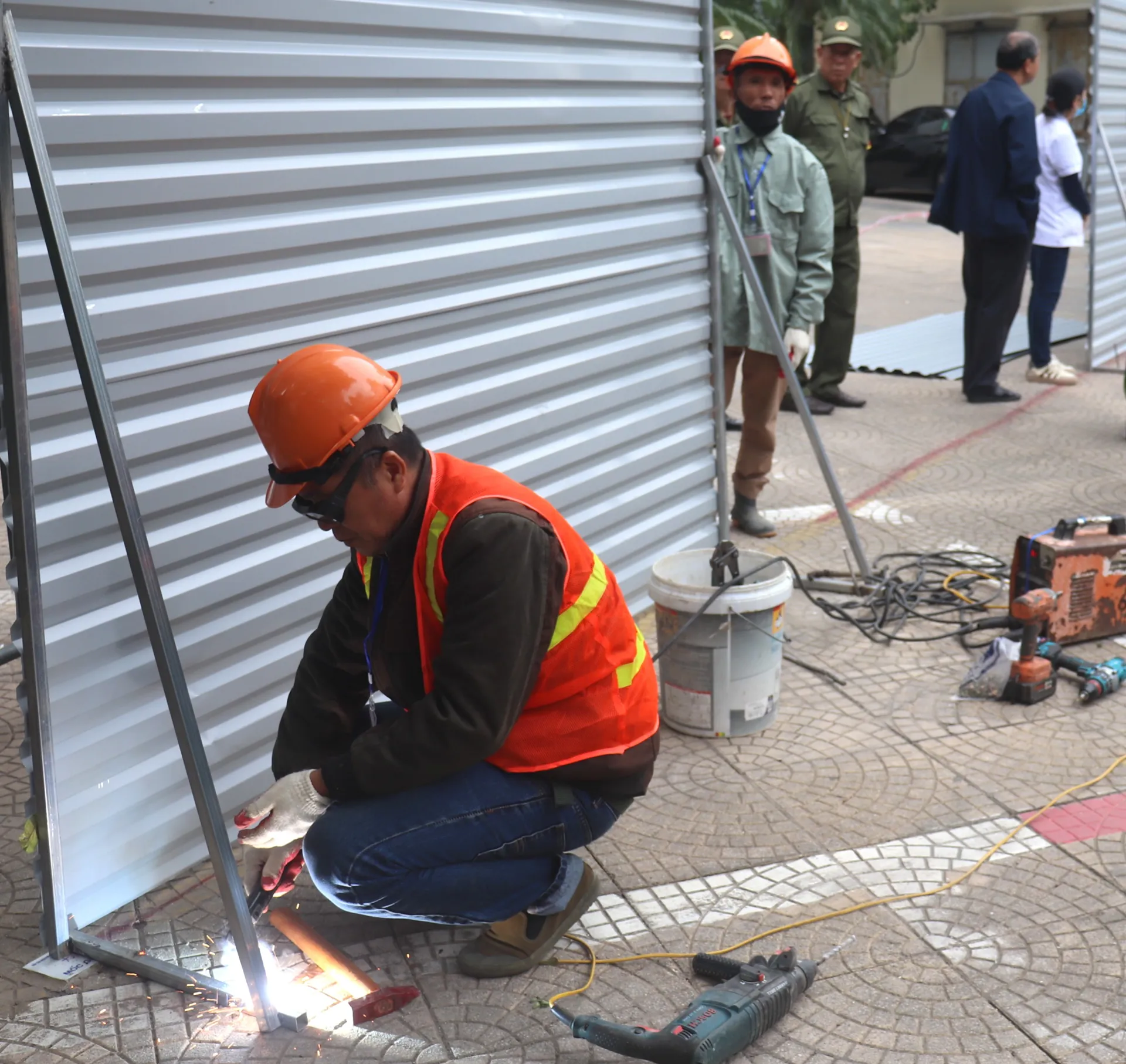 Lắp dựng hàng rào tôn trong phạm vi dự án để bảo đảm an toàn, tổ chức thi công