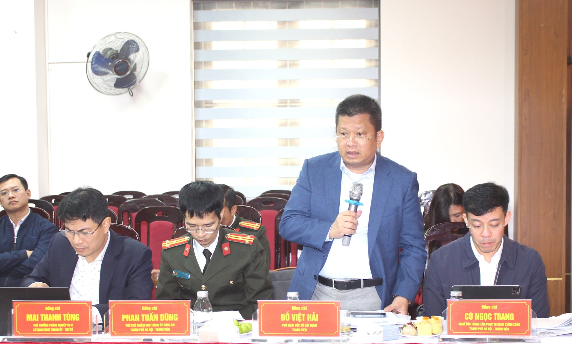 Các thành viên Đoàn giám sát của Ban Thường vụ Thành ủy Hà Nội phát biểu. Ảnh: Đình Hiệp