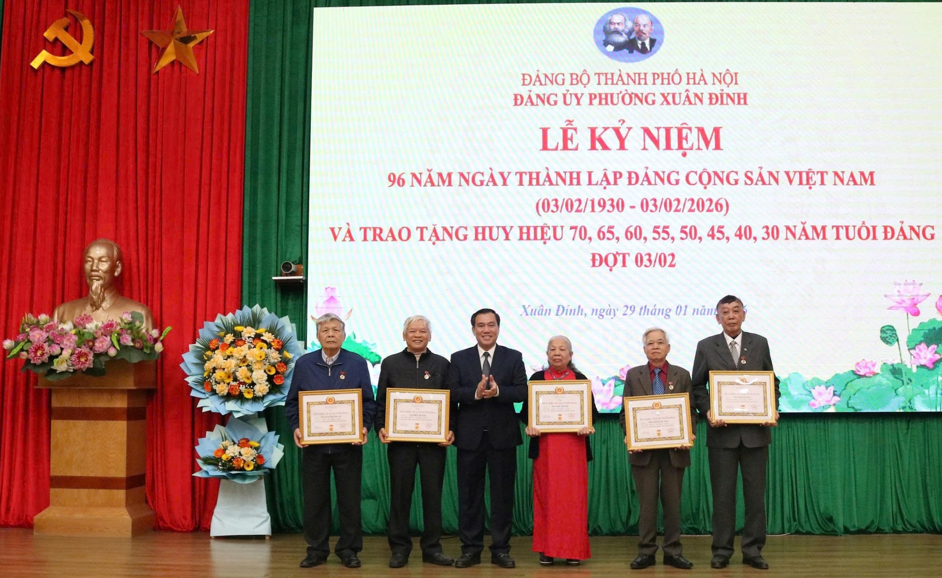 Tại buổi lễ, Đảng bộ phường Xuân Đỉnh đã trang trọng trao Huy hiệu Đảng tặng 59 đảng viên, trong đó có 1 đảng viên 70 năm tuổi Đảng; 1 đảng viên 65 năm tuổi Đảng; 5 đảng viên 60 năm tuổi Đảng; 5 đảng viên 55 năm tuổi Đảng; 5 đảng viên 50 năm tuổi Đảng; 13 đảng viên 45 năm tuổi Đảng; 16 đảng viên 40 năm tuổi Đảng và 16 đảng viên 30 năm tuổi Đảng. Đây là sự ghi nhận xứng đáng của Đảng đối với những cống hiến bền bỉ, kiên trung của các đảng viên trong suốt quá trình công tác và rèn luyện.