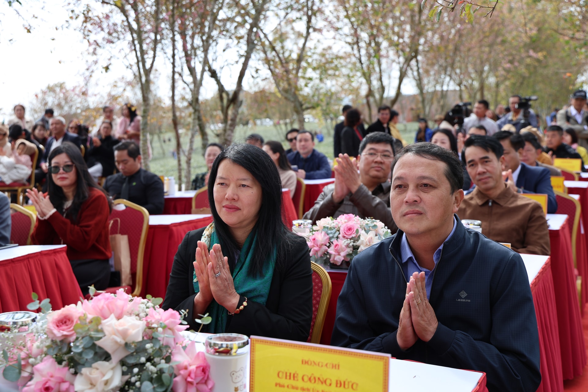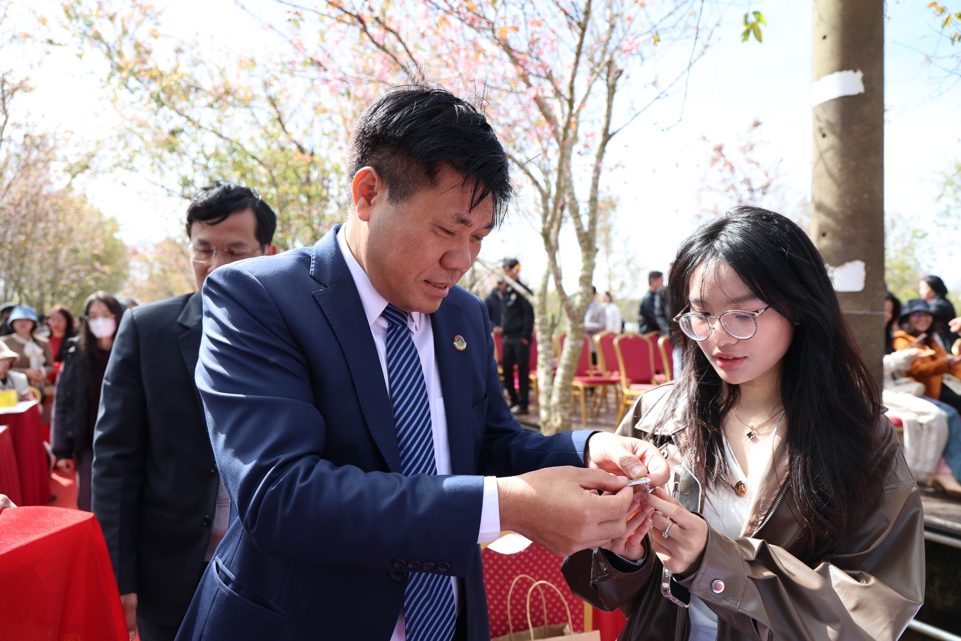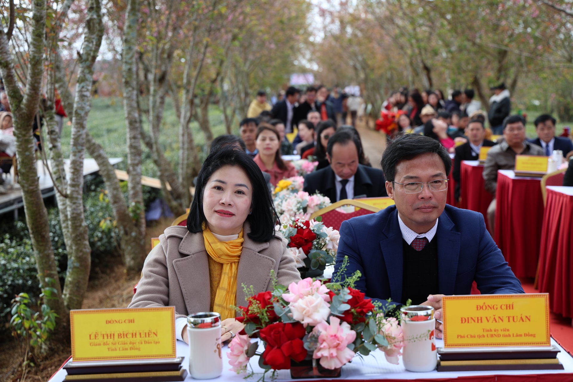 Các đại biểu dự Lễ khai mạc Chương trình hưởng ứng Lễ hội hoa mai anh đào - Đà Lạt Xuân 2026 tại đồi trà Cầu Đất, phường Xuân Trường - Đà Lạt