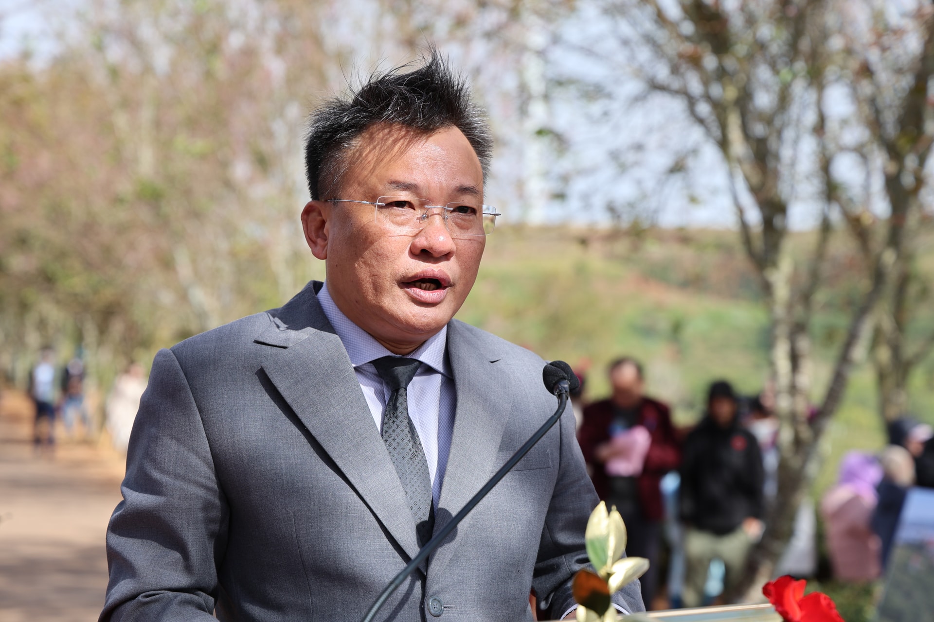 Chủ tịch UBND phường Xuân Trường - Đà Lạt Trần Hùng Sơn phát biểu khai mạc chương trình hưởng ứng Lễ hội