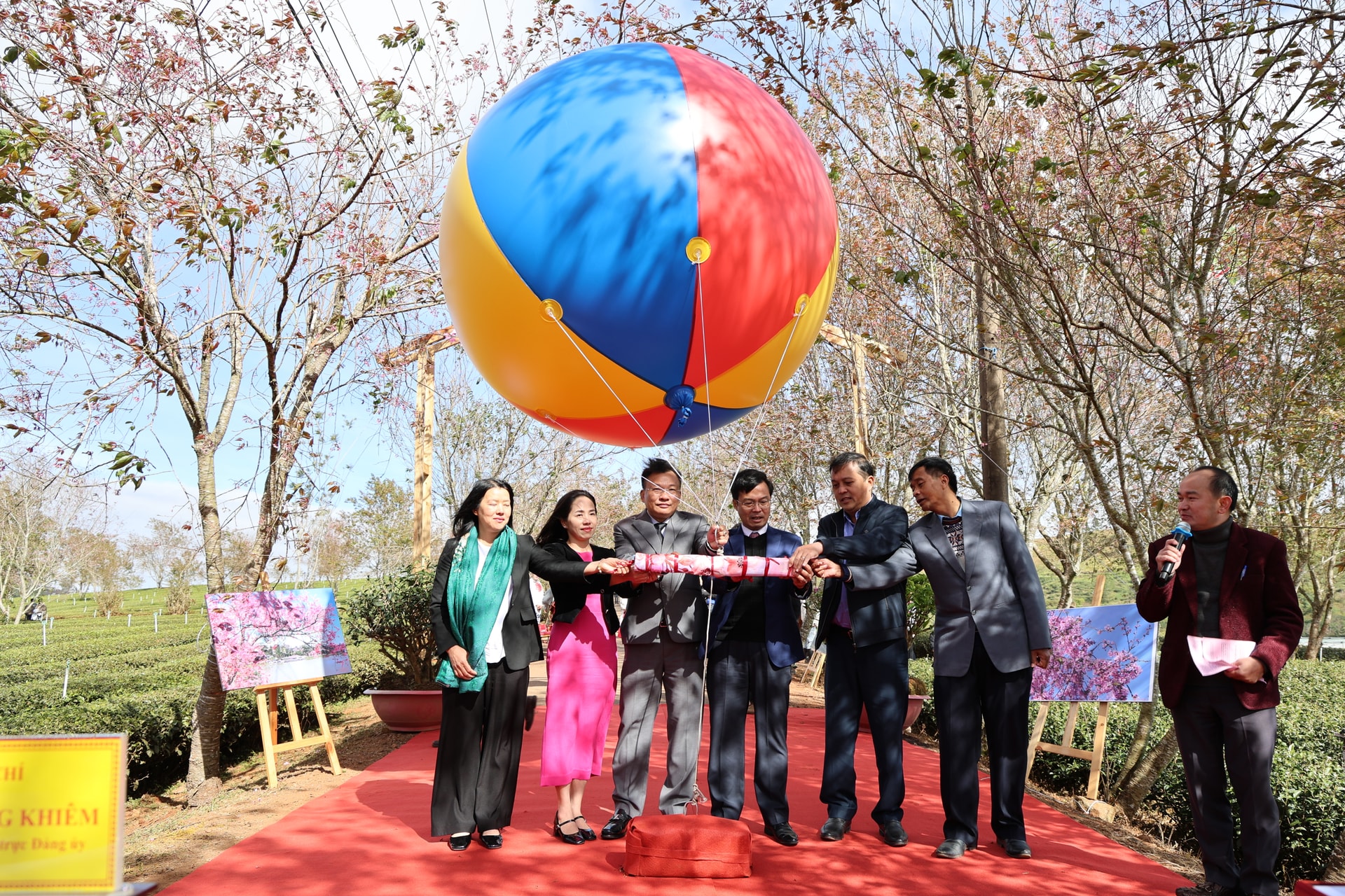 Ngay sau lễ khai mạc, các đại biểu, Nhân dân và du khách đã cùng tham gia trồng 50 cây hoa mai anh đào tại khu vực đồi trà Cầu Đất.