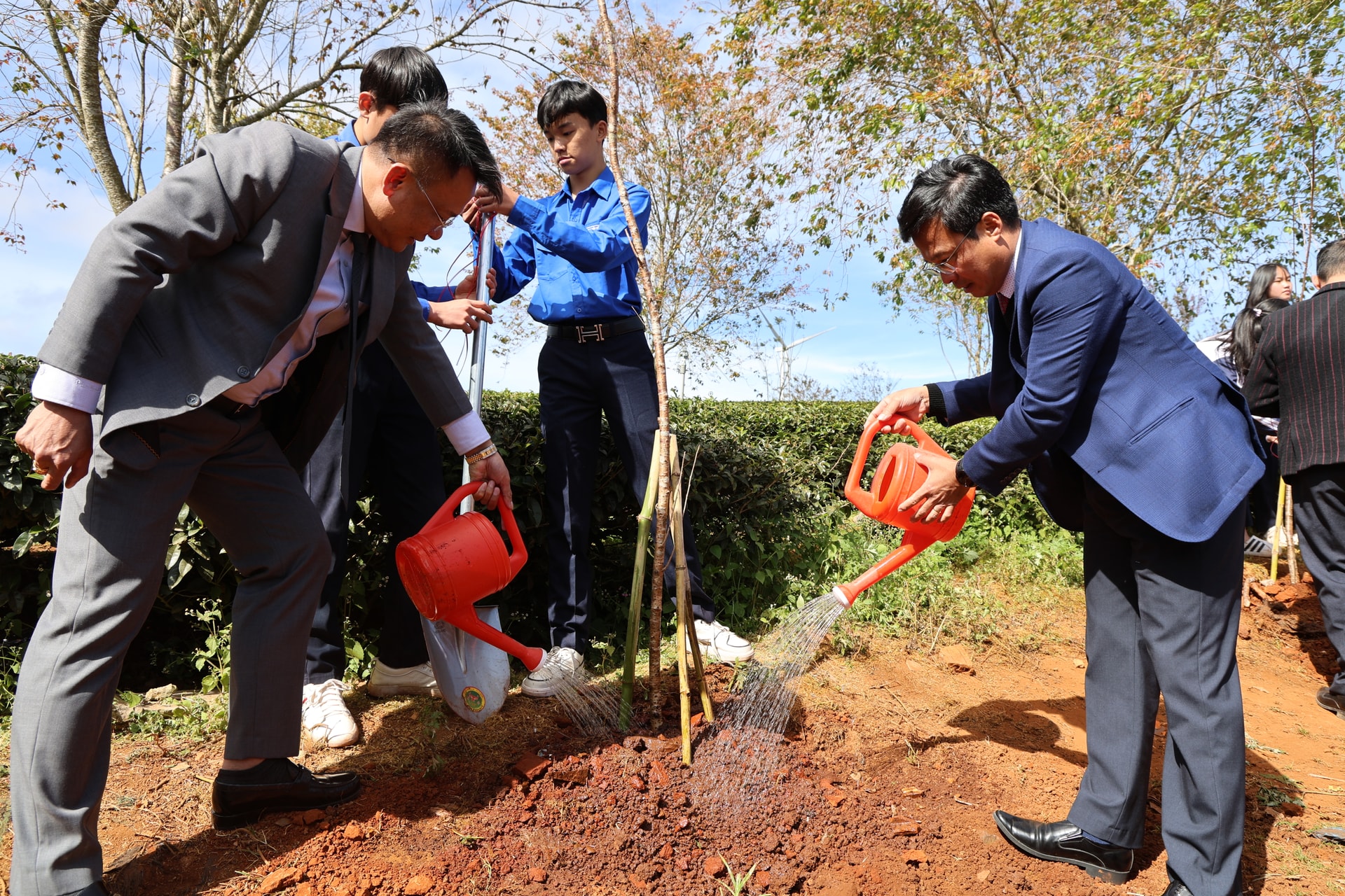 Các đại biểu tham gia trồng hoa mai anh đào tại đồi trà Cầu Đất, phường Xuân Trường - Đà Lạt