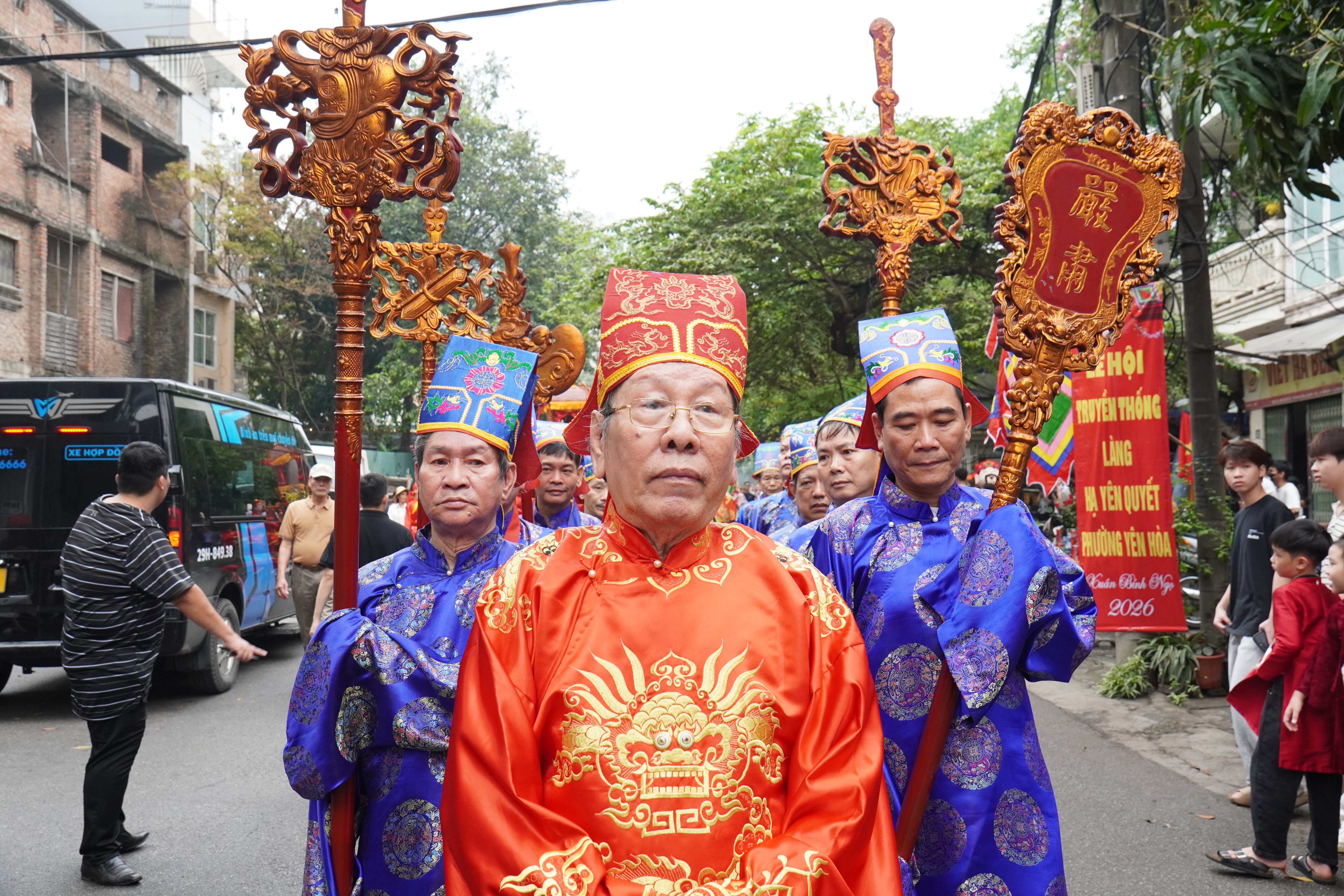 Đoàn rước được tổ chức trang nghiêm, bài bản với đầy đủ nghi trượng, các bô lão, đội tế lễ, cùng đại diện các giáp trong làng – tái hiện truyền thống “08 giáp” từng gắn bó với đình trong sinh hoạt cộng đồng xưa.