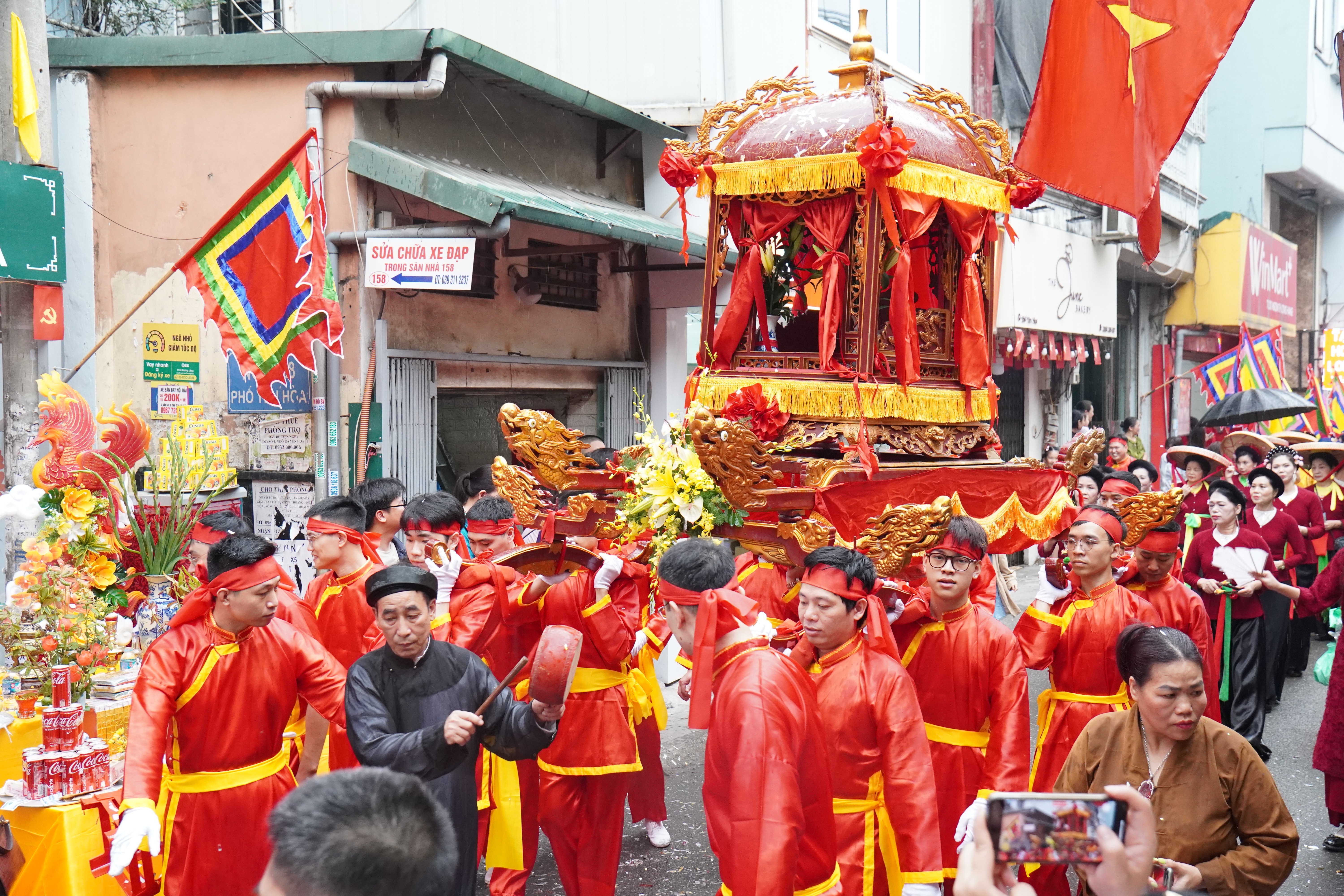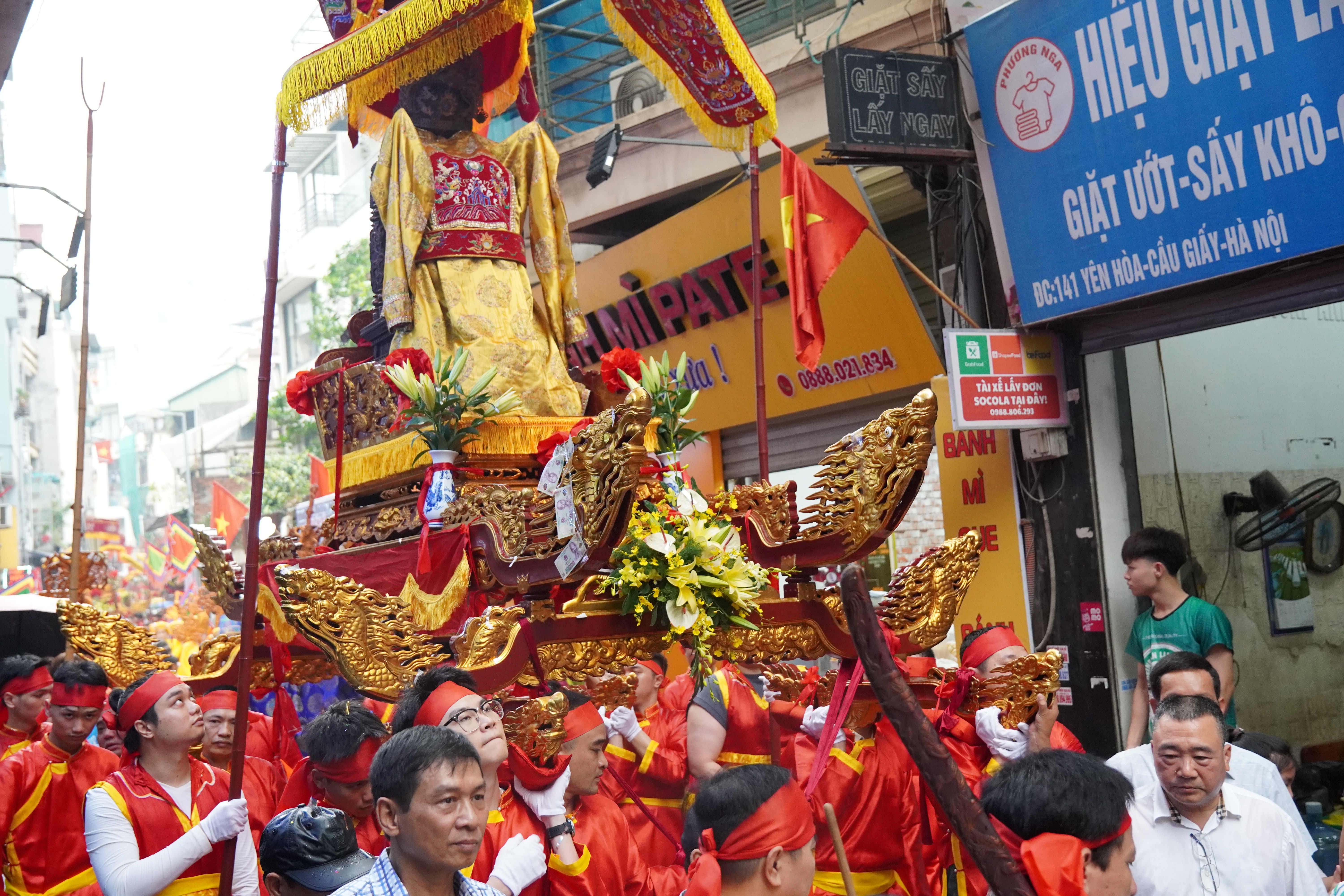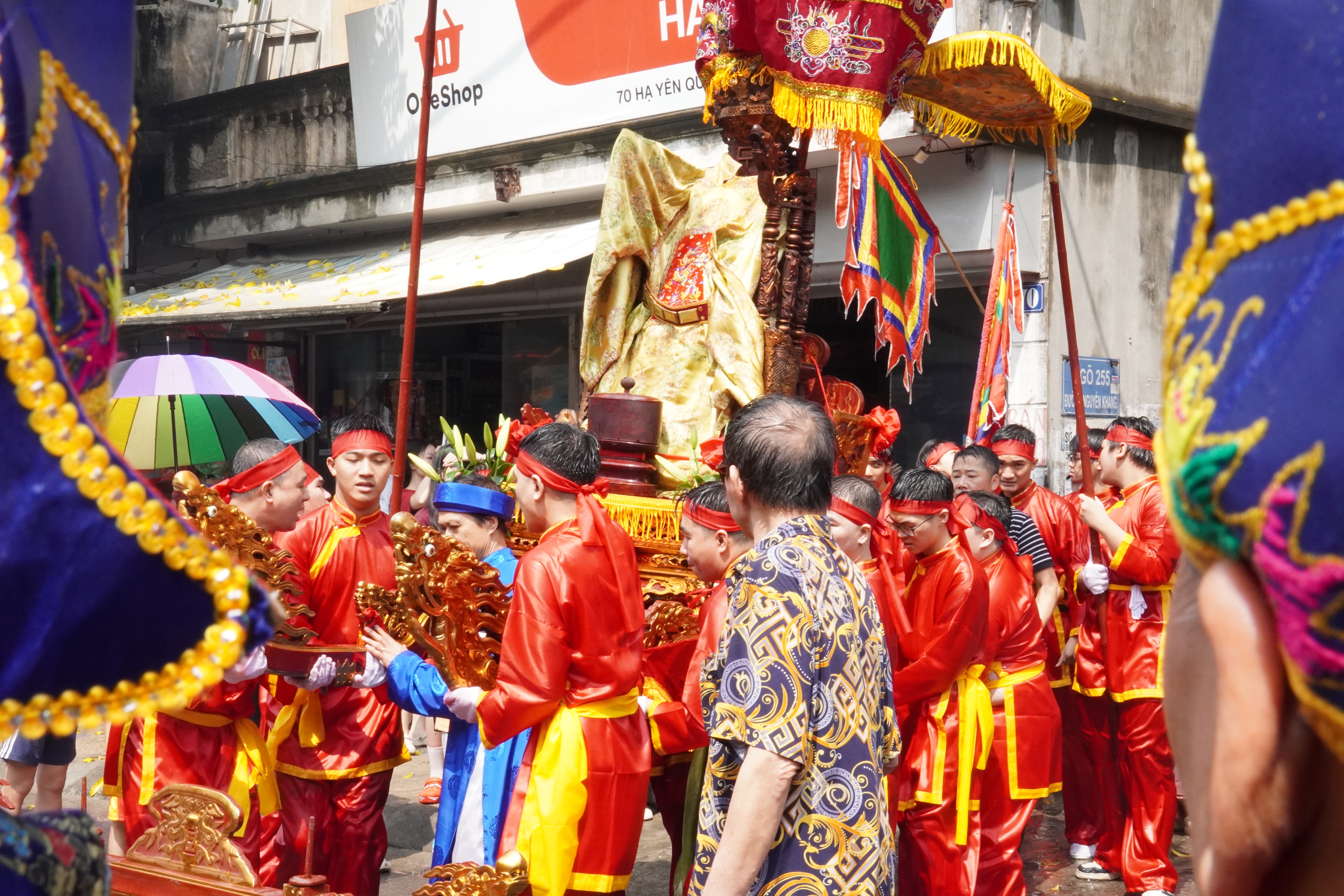 Các tuyến đường được trang hoàng cờ hội, đèn lồng rực rỡ, hòa cùng pano, khẩu hiệu tuyên truyền tạo nên diện mạo tươi mới, rộn ràng. Đông đảo Nhân dân địa phương và du khách thập phương đã có mặt để chứng kiến nghi thức rước kiệu – phần lễ được mong chờ nhất.