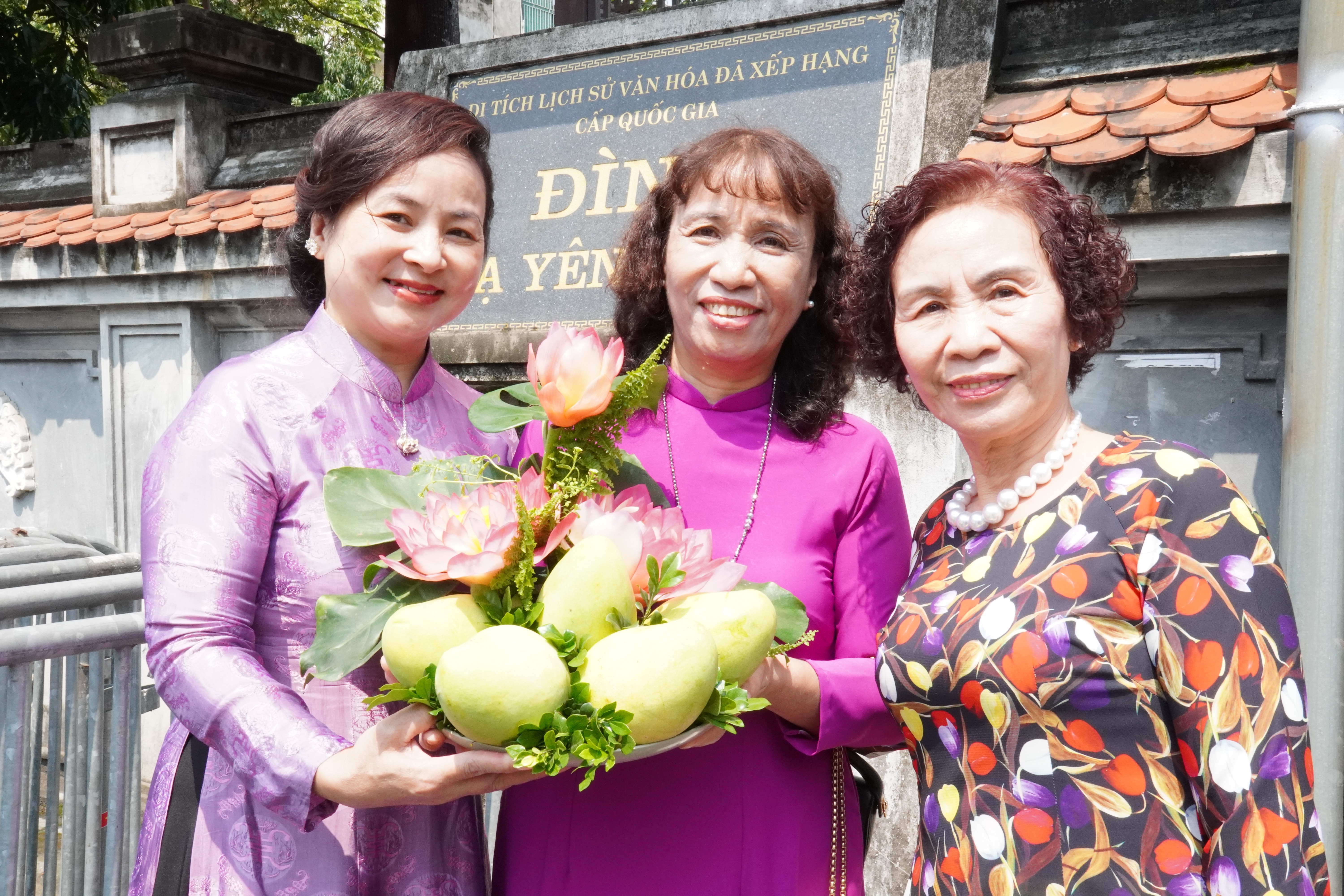 Cô Nhung, cô Nghĩa và cô Thu (trú tại phường Yên Hòa) chuẩn bị lễ vật cùng "thắp nén tâm hương" dâng lên các thánh của làng.
