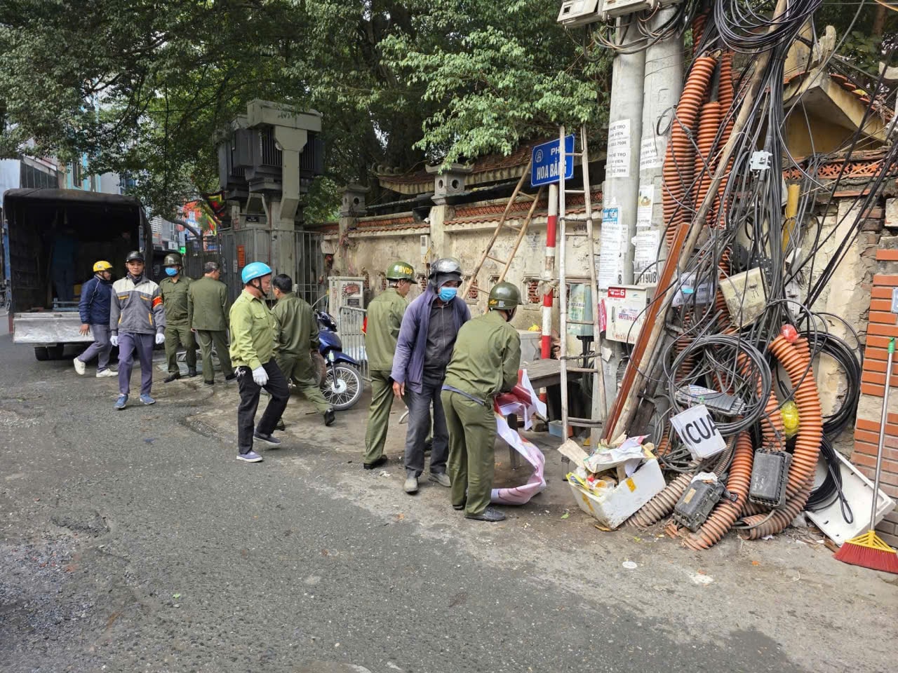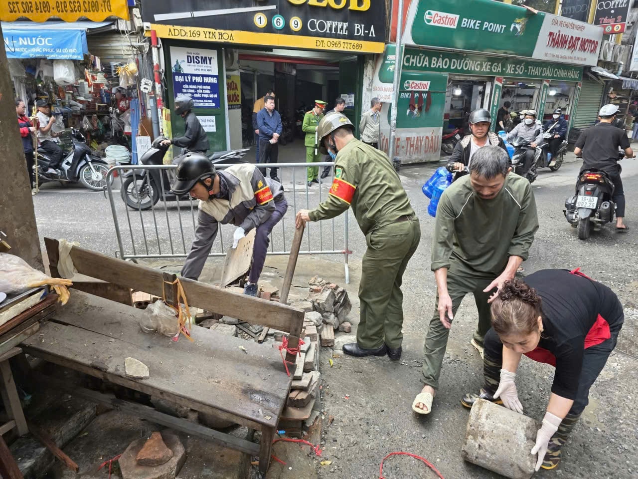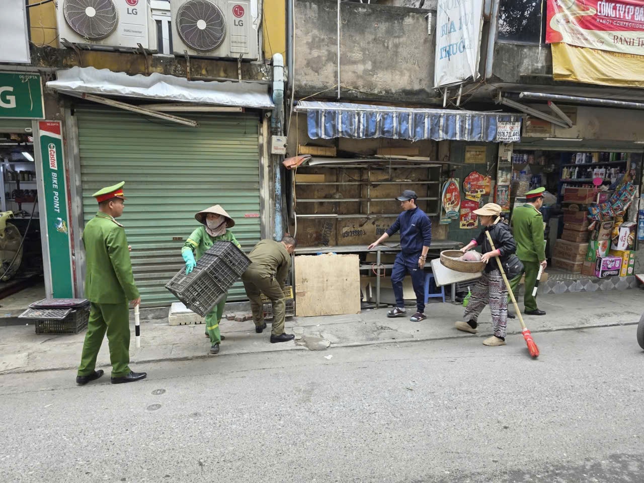 Lực lượng chức năng xử lý vi phạm tại phố Hoa Bằng. Ảnh: PV