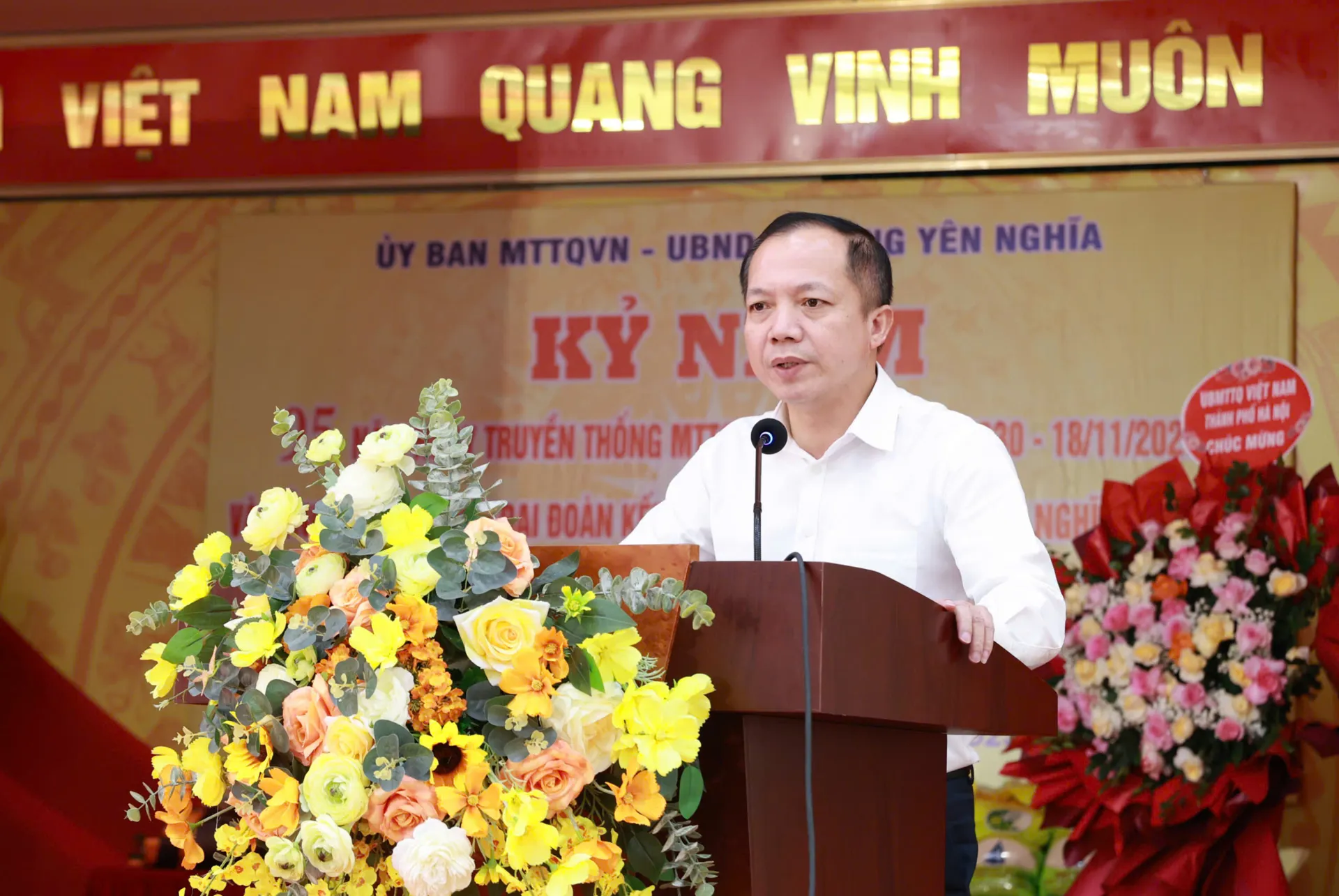 Phát biểu tại lễ kỷ niệm, Phó Bí thư Thường trực Đảng ủy phường Yên Nghĩa Phạm Văn Chiến ghi nhận và biểu dương những nỗ lực của Mặt trận, các đoàn thể và Nhân dân trong năm qua. Đồng thời đề nghị: “UBND, MTTQ phường và các tổ dân phố cần tiếp tục đẩy mạnh phong trào thi đua yêu nước, nhất là phong trào ‘Người tốt, việc tốt’, ‘Dân vận khéo’. Đây không chỉ là nhiệm vụ thường xuyên mà còn là tiêu chí quan trọng trong đánh giá tổ dân phố, chi bộ và các cơ quan”.