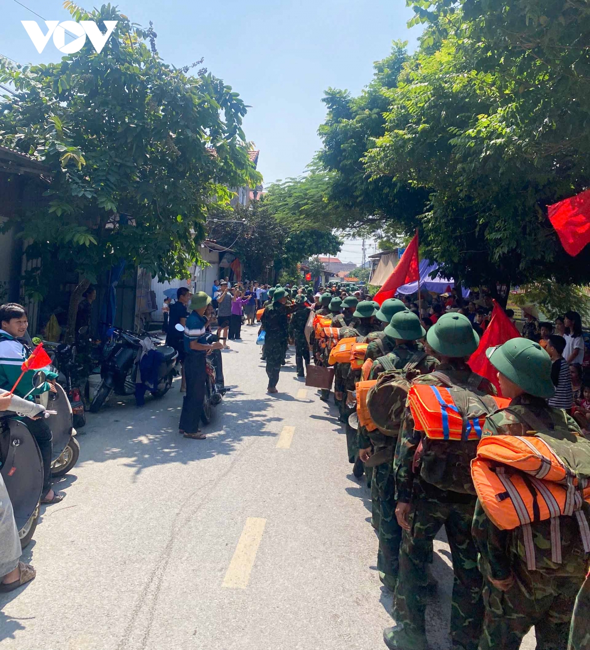 Phút giây chia tay bịn rịn của gần 1.000 chiến sĩ với bà con ở vùng lũ Bắc Ninh.