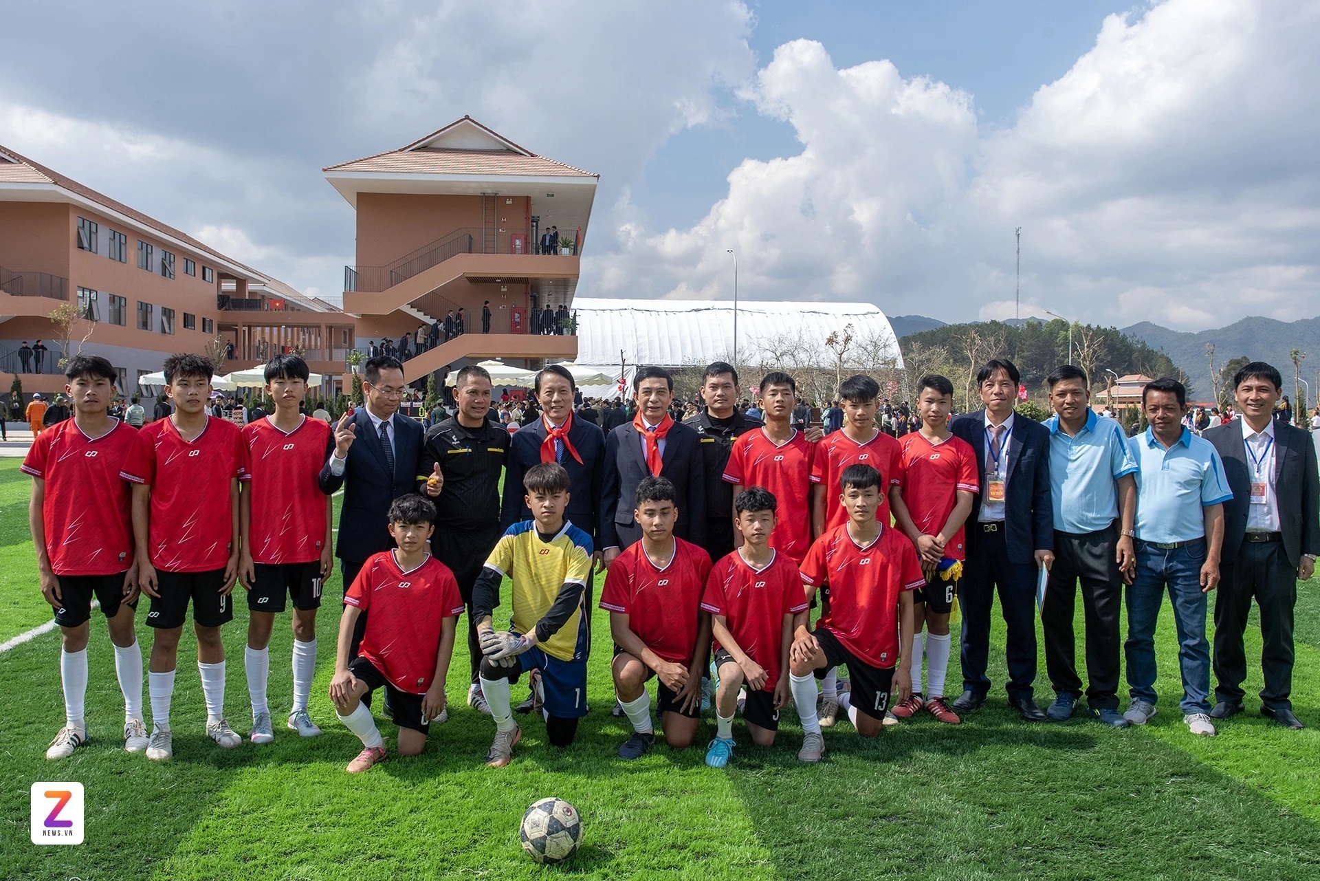 Sáng 31/1, nhân dịp khánh thành Trường Phổ thông Nội trú liên cấp Tiểu học, THCS Si Pa Phìn (xã Si Sa Phìn, tỉnh Điện Biên), Bộ trưởng Quốc phòng Phan Văn Giang, Bộ trưởng Công an Lương Tam Quang chụp ảnh lưu niệm cùng các thành viên Đội thiếu niên PVF Công an nhân dân và Đội thiếu niên Điện Biên.