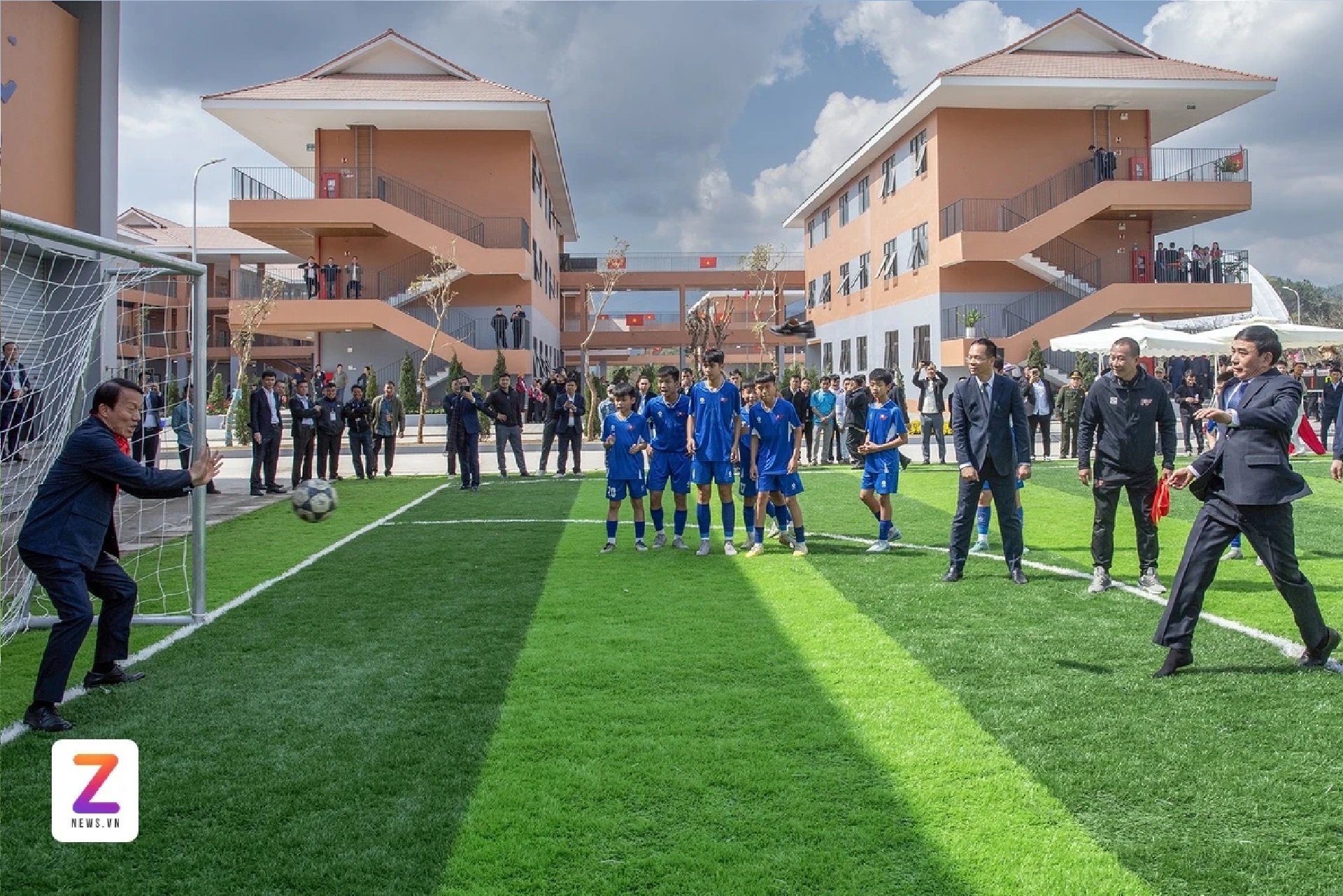 Bộ trưởng Quốc phòng Phan Văn Giang sút luân lưu trong khi Bộ trưởng Công an Lương Tam Quang làm thủ môn.