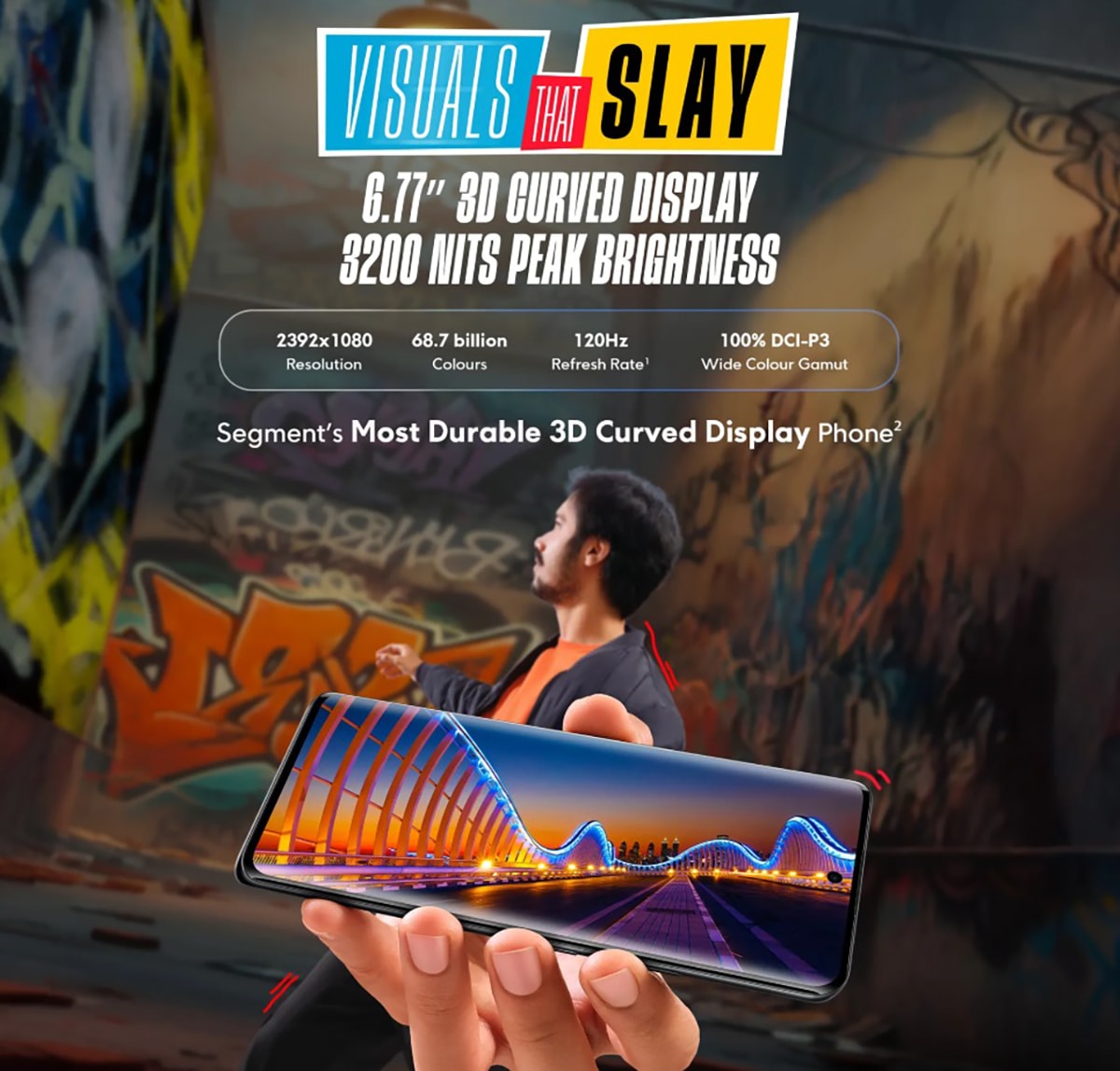 Kích thước: 6.77 inch, thiết kế cong tràn cạnh 3D.