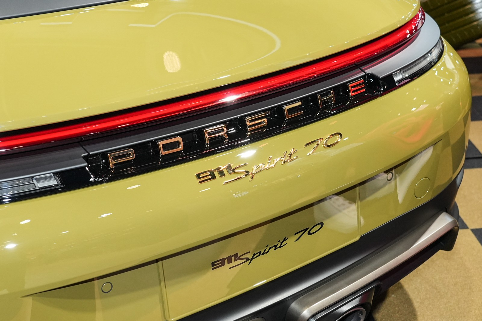 Chiếc xe là tác phẩm của bộ phận đặc biệt Porsche Exclusive Manufaktur. Nhiều huy hiệu ở ngoại thất và nội thất của Porsche 911 Spirit 70 cũng được mạ vàng kim.