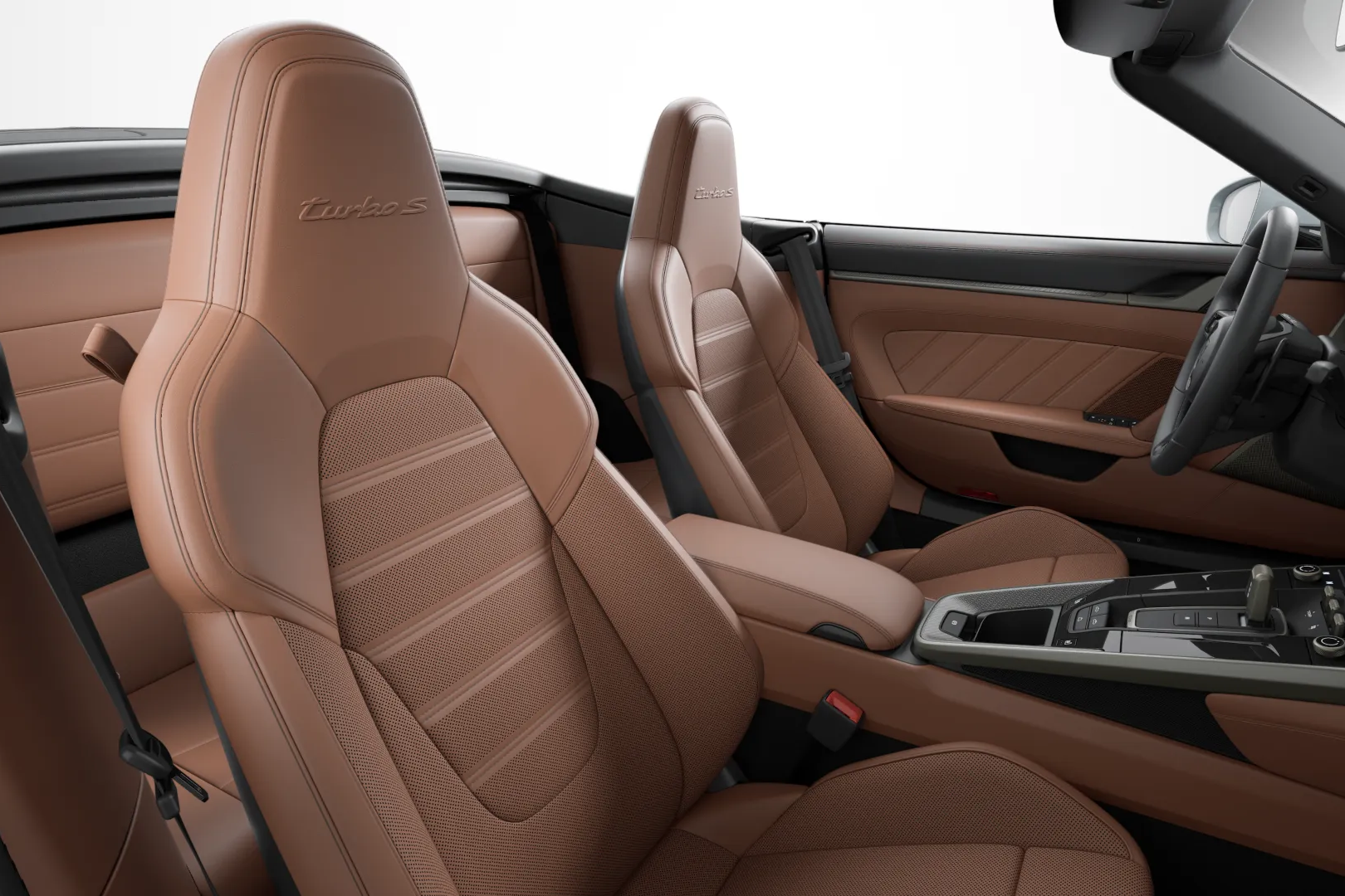 Tại khu vực nội thất, khách hàng có thể tự do sáng tạo với hàng trăm tùy chọn cho chiếc Porsche 911 Turbo S Cabriolet. Nhiều chi tiết cũng được hoàn thiện với màu xám Turbonite đặc trưng trên bản hiệu năng cao này.