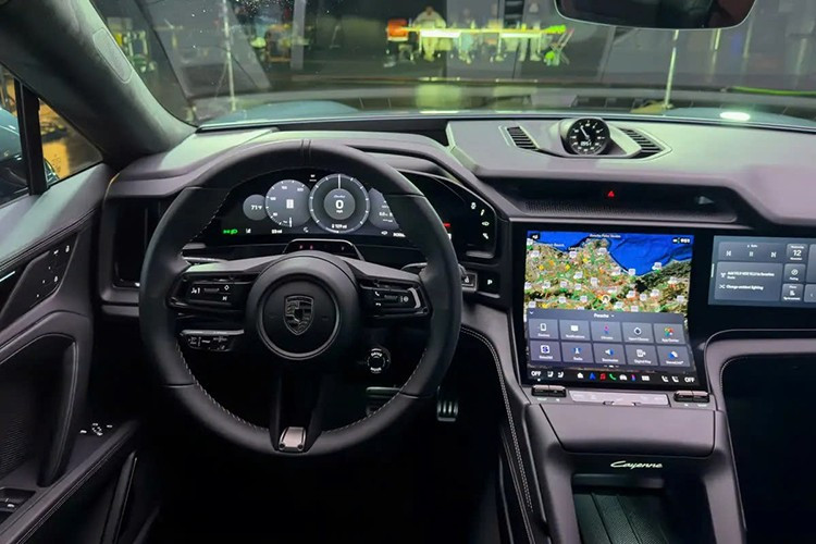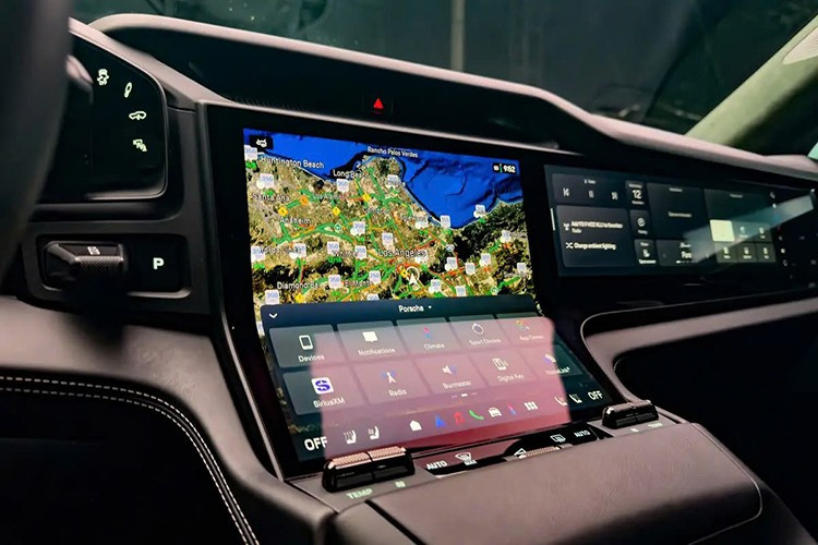 Đáng chú ý là hệ thống hiển thị thông tin trên kính lái (HUD) kích thước lên tới 87 inch tích hợp thực tế tăng cường. Dù sở hữu lượng màn hình "khủng", Porsche vẫn tinh tế giữ lại các phím vật lý cho điều hòa và âm lượng để đảm bảo thao tác thuận tiện khi lái xe.