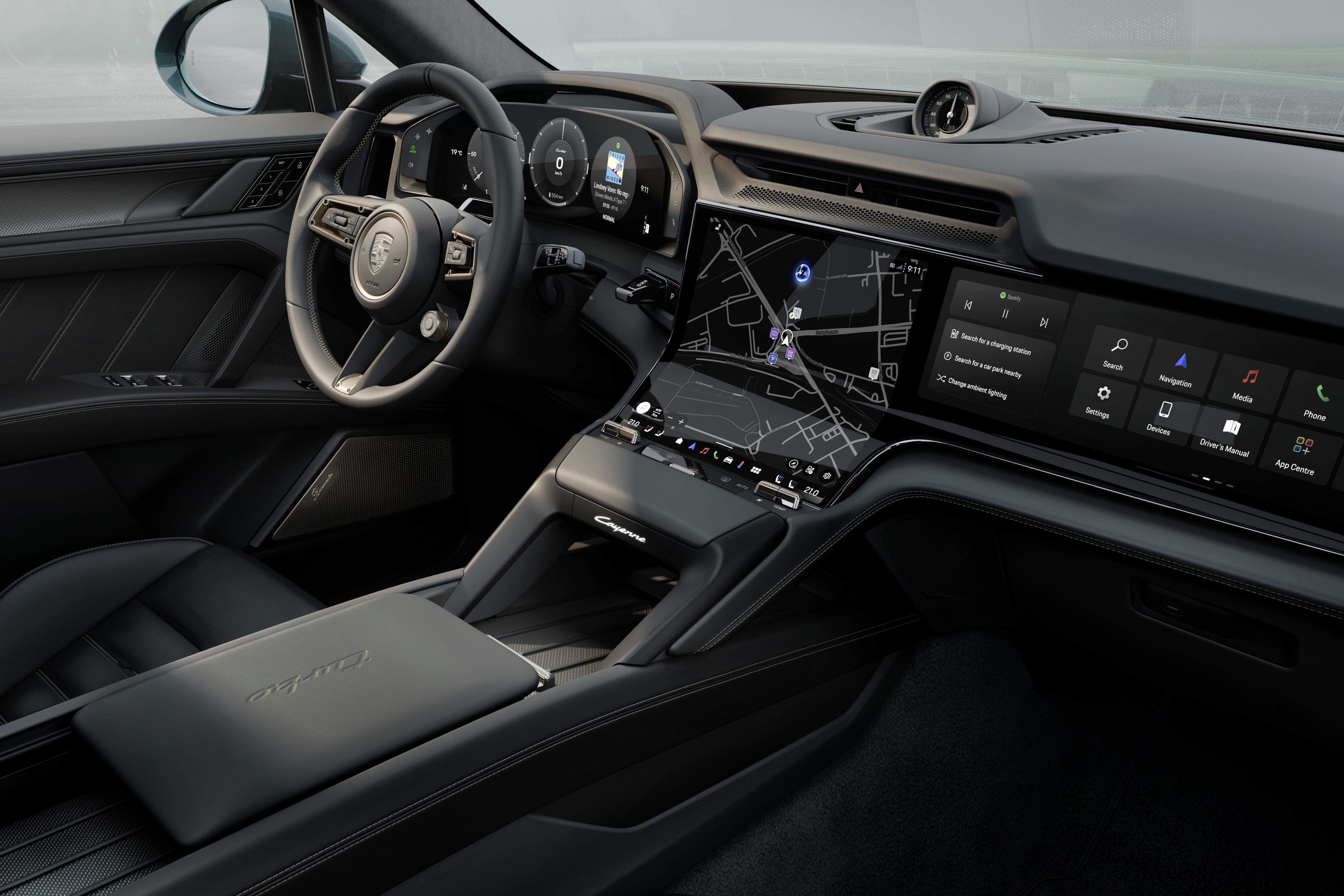 Nổi bật tại không gian nội thất là bảng taplo "Flow Display" tương tự Cayenne Electric, bảng đồng hồ taplo kỹ thuật số OLED 14.25 inch, màn hình cảm ứng trung tâm mở rộng xuống tựa tay và màn hình dành cho ghế phụ 14.9 inch.