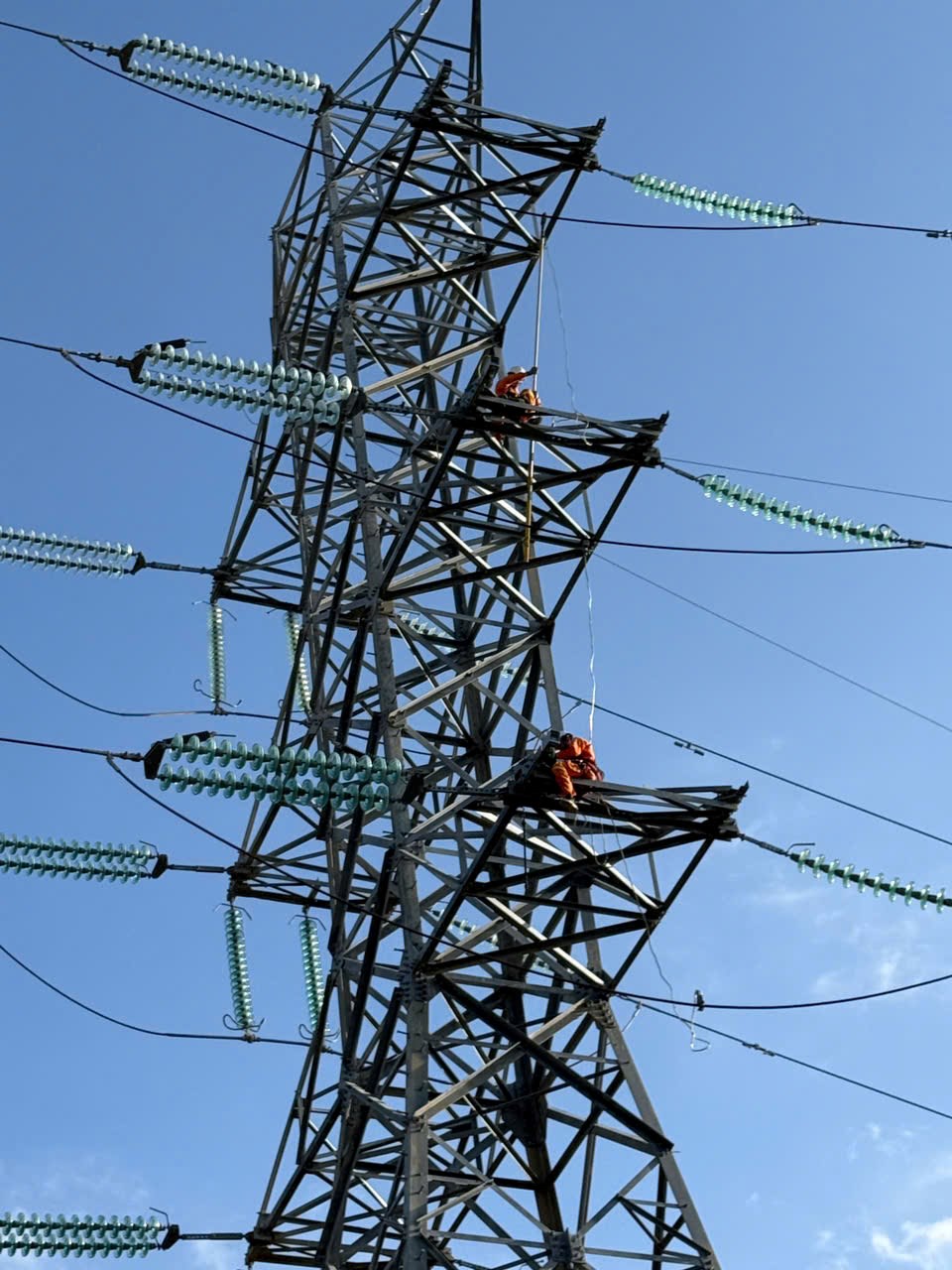 Truyền tải điện Lâm Đồng tổ chức vệ sinh cách điện, kiểm tra, bảo dưỡng đường dây 500kV Thuận Nam -Vĩnh Tân. Ảnh: PCT3