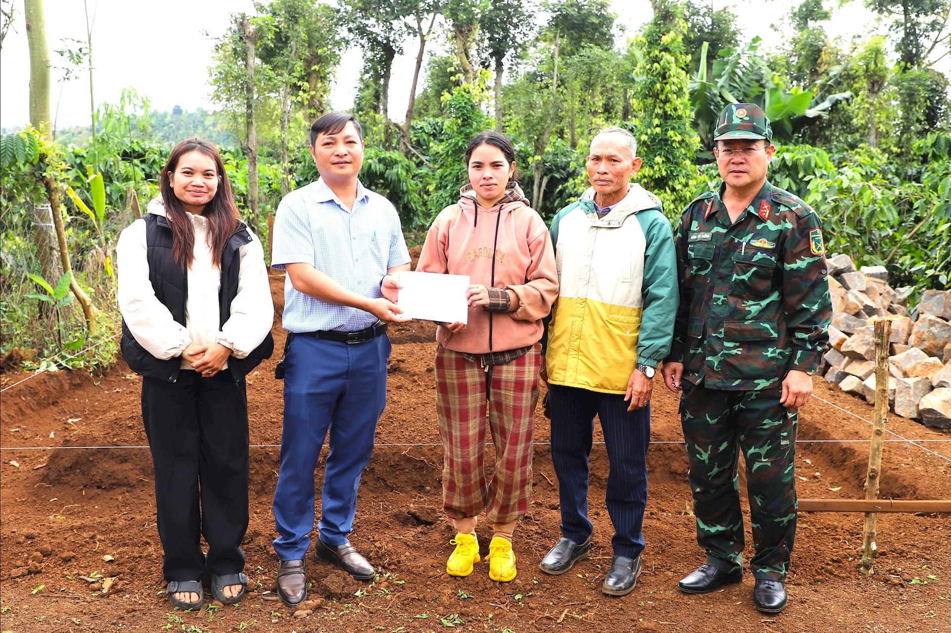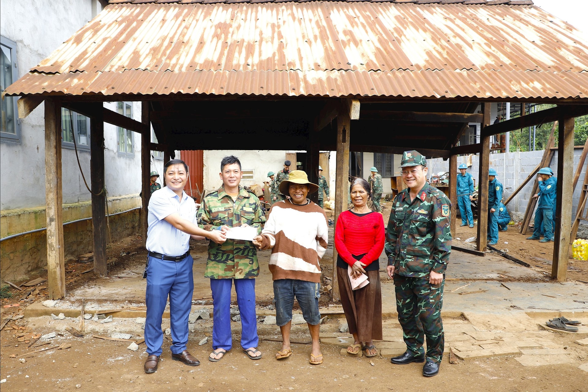Ban Chỉ huy PTKV 2 phối hợp với chính quyền địa phương bàn giao kinh phí xây dựng nhà cho ông Y Drah và đơn vị thi công