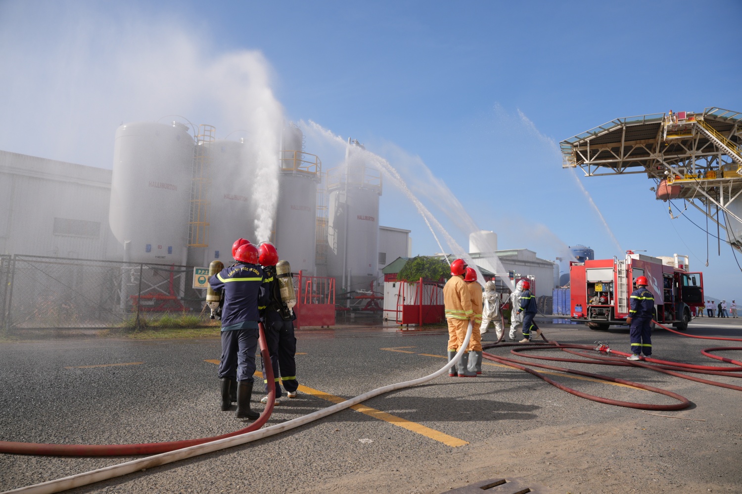 Diễn tập ANCB, phòng cháy chữa cháy và ứng phó sự cố tràn dầu tại Chi nhánh Cảng Dầu khí và Dịch vụ Năng lượng tái tạo (PTSC Supply Base).