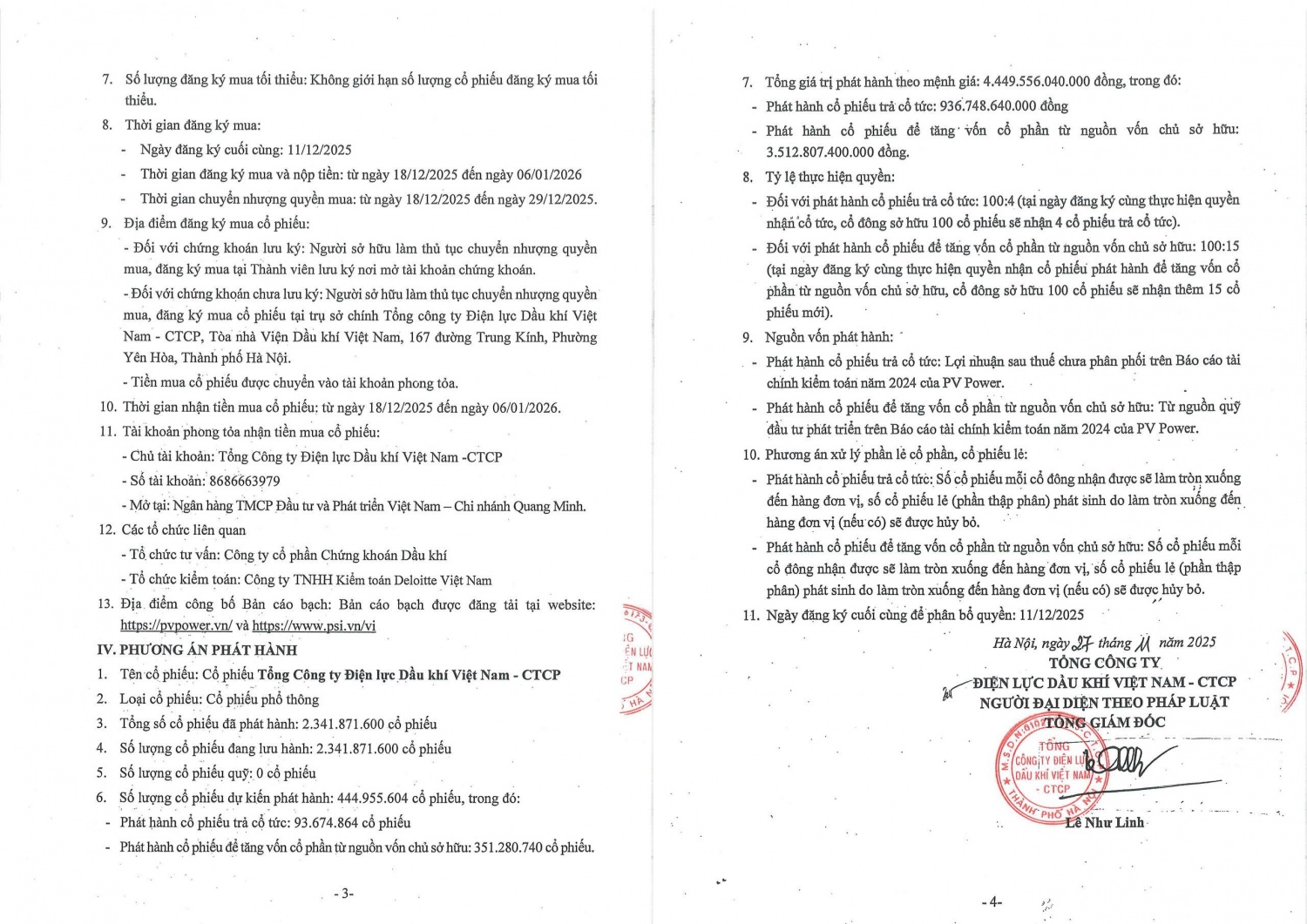 Thời gian đăng ký mua và nộp tiền diễn ra từ ngày 18/12/2025 đến 6/1/2026. Quyền mua được phép chuyển nhượng từ ngày 18/12 đến 29/12/2025.