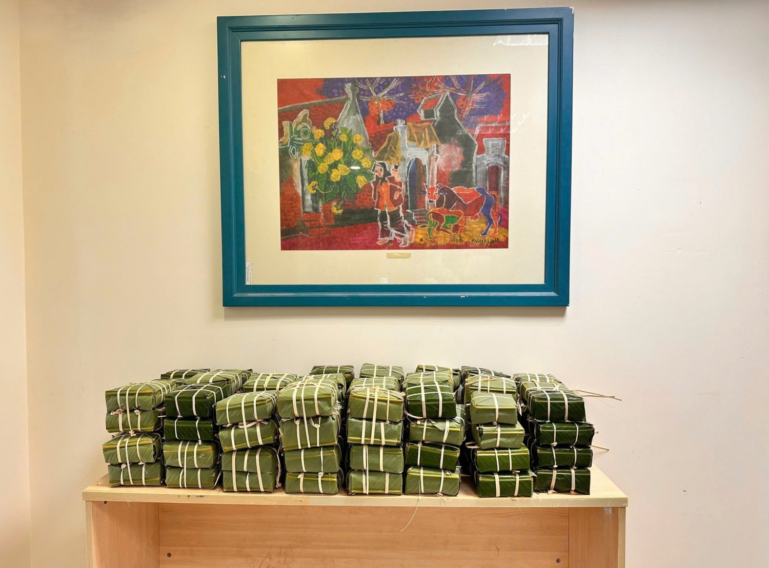Những chiếc bánh hoàn thành được xếp ngay ngắn, xanh màu lá dong, thơm mùi nếp mới, cũng là lúc tập thể cùng cảm nhận rõ giá trị của sự chung tay, đồng lòng.