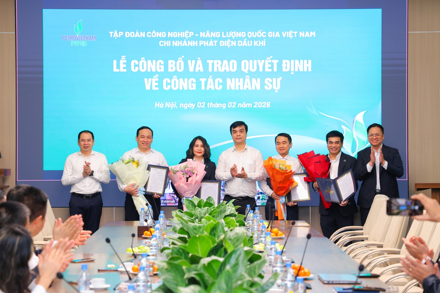 Nhằm kiện toàn tổ chức bộ máy, tăng cường năng lực quản trị, điều hành, đáp ứng yêu cầu nhiệm vụ trong giai đoạn tới, ngày 2/2/2026, tại Hà Nội, Chi nhánh Phát điện Dầu khí (PVPGB), thuộc Tập đoàn Công nghiệp - Năng lượng Quốc gia Việt Nam (Petrovietnam) đã tổ chức Lễ công bố và trao các quyết định bổ nhiệm cán bộ lãnh đạo các phòng thuộc Cơ quan Chi nhánh.