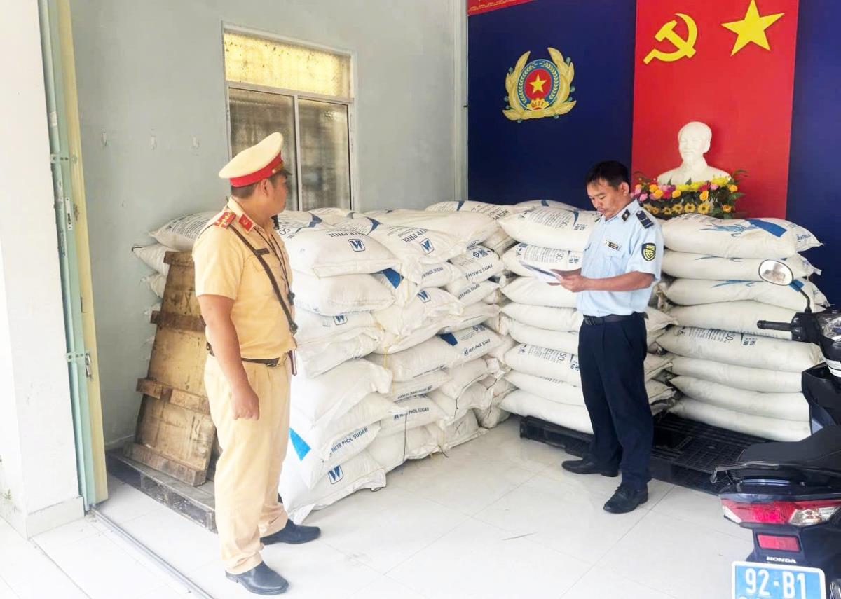Đội QLTT Số 10 lập biên bản tạm giữ lô hàng 6 tấn đường tinh luyện Thái Lan nhập lậu.