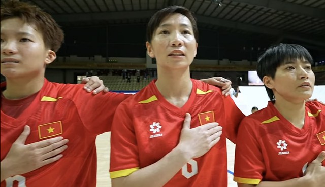 Ra sân trong trận đấu mở màn futsal nữ SEA Games 33, Thùy Trang đã khóc. Chị là người mở tỉ số, ghi bàn thắng quan trọng mở ra thắng lợi 3-0 cho đội tuyển futsal nữ Việt Nam trước Indonesia.