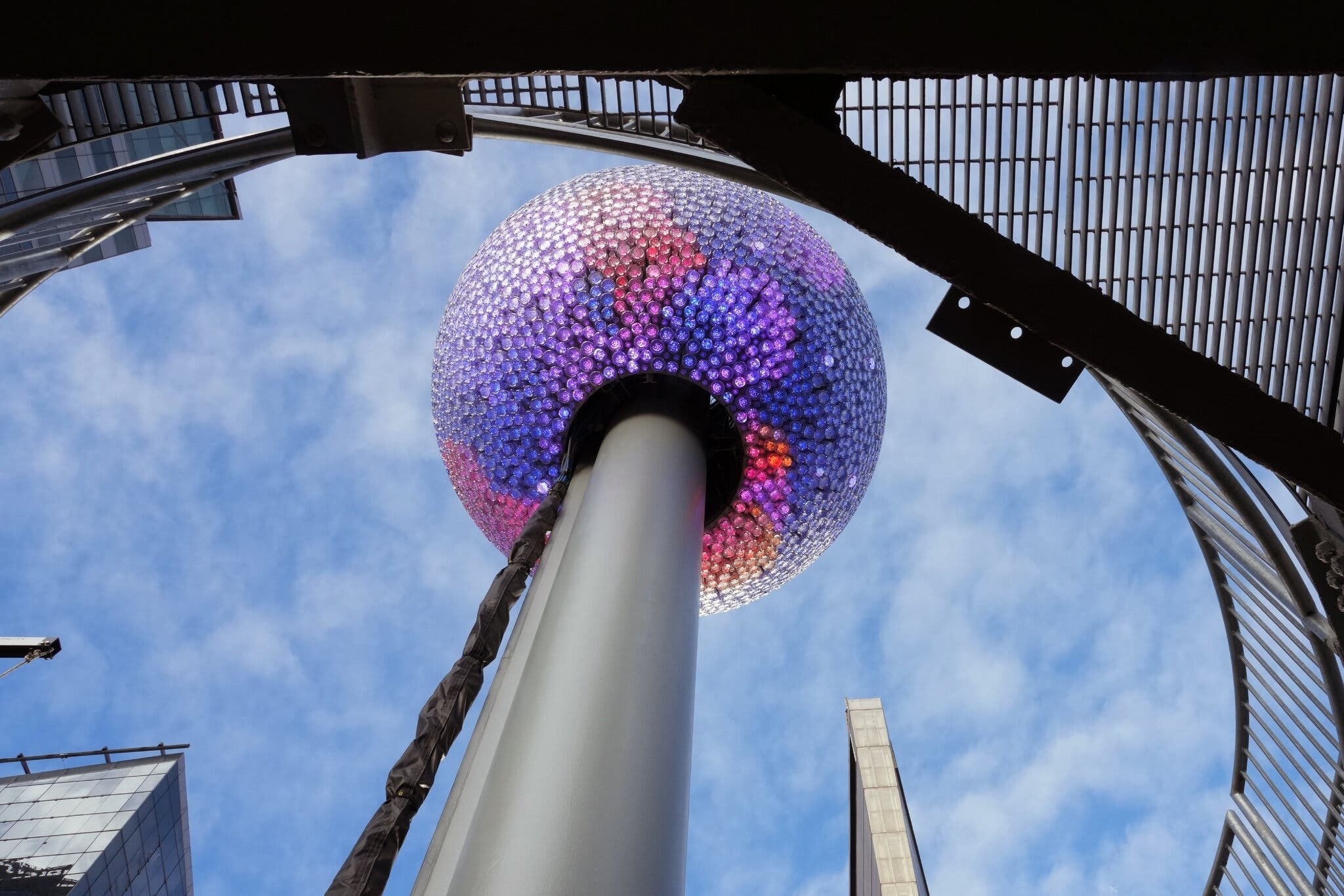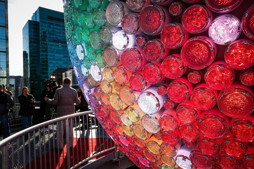 Khác với các năm trước, phiên bản 2026 sử dụng pha lê dạng tròn thay cho hình tam giác, mỗi viên có hoa văn riêng và được thiết kế với 3 kích cỡ khác nhau. Theo đơn vị chế tác Waterford Crystal (Ireland), 3 mẫu pha lê năm nay được thiết kế theo chủ đề “Niềm vui vô hạn - Ánh sáng vô hạn - Khởi đầu vô hạn”, với mỗi đường cắt và đường cong thể hiện sự hòa quyện giữa phản chiếu và đổi mới, truyền tải tinh thần hướng về những điều tốt đẹp trong năm mới. Ảnh: Kena Betancur/Shutterstock.