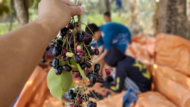 Loại quả độc đáo này khi chín có màu đen sẫm, vỏ căng bóng, dáng thuôn, có nhiều nét tương đồng với quả nho. Quả khi còn non có vị chua và chát, khi chín sẽ chuyển sang vị ngọt. Đây không chỉ là món ăn vặt dân dã thơm ngon mà còn đem đến nhiều lợi ích cho sức khỏe con người.
