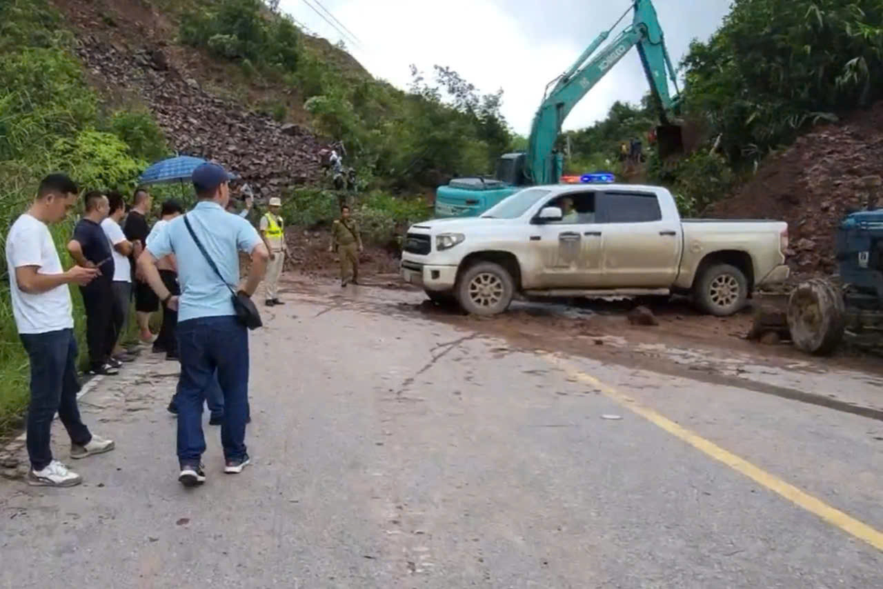 Sáng 3/8, đoàn xe rời Đặc khu Tam Giác Vàng đưa 155 nghi phạm về Viêng Chăn. Nhưng chỉ một tiếng sau, đoàn xe bị chặn đứng bởi một quả đồi sạt lở. Hàng nghìn mét khối đất đá chắn ngang tuyến đường độc đạo.