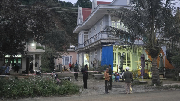 Khu vực có nguy cơ xảy ra sự cố nứt trượt đất trên đồi cao phía sau trượt xuống.