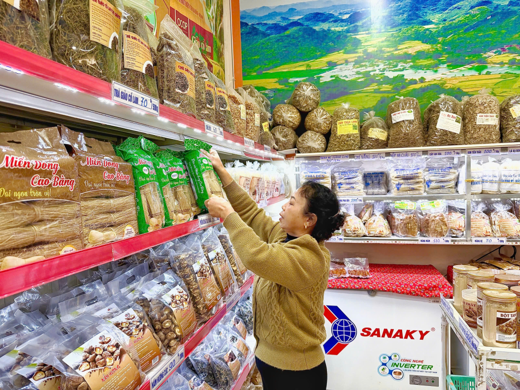 Thị trường OCOP cũng ghi nhận sức mua tăng mạnh vào dịp cuối năm. Bà Nguyễn Thị Chính, Giám đốc Công ty TNHH Sản xuất và Thương mại Phan Hoàng cho biết: Đây luôn là thời điểm cao điểm tiêu thụ sản phẩm. Doanh nghiệp hiện có 5 đại lý trên cả nước với các mặt hàng vừa tự sản xuất, vừa liên kết cùng các hợp tác xã uy tín để đưa vào phân phối. Những sản phẩm bán chạy nhất vẫn là miến dong, nấm hương, măng khô, với sản lượng có thể đạt vài tấn trong các tháng cao điểm, bên cạnh các sản phẩm thịt chế biến và các set quà OCOP. Theo bà Chính, nhiều sản phẩm phải đúng mùa mới đảm bảo chất lượng nên doanh nghiệp thường chủ động dự trữ trước từ 3 - 4 tháng cho dịp Tết, đồng thời kiên trì nguyên tắc chỉ nhập hàng từ những đơn vị uy tín, không chạy theo số lượng để đảm bảo chất lượng lâu dài.
