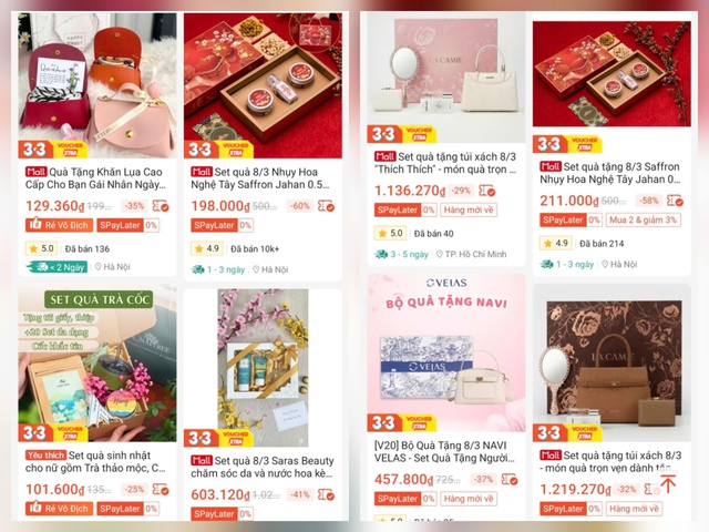 Quà tặng 8/3 được bán trên sàn thương mại điện tử Shopee với nhiều lượt mua trong thời gian ngắn. Ảnh chụp màn hình.