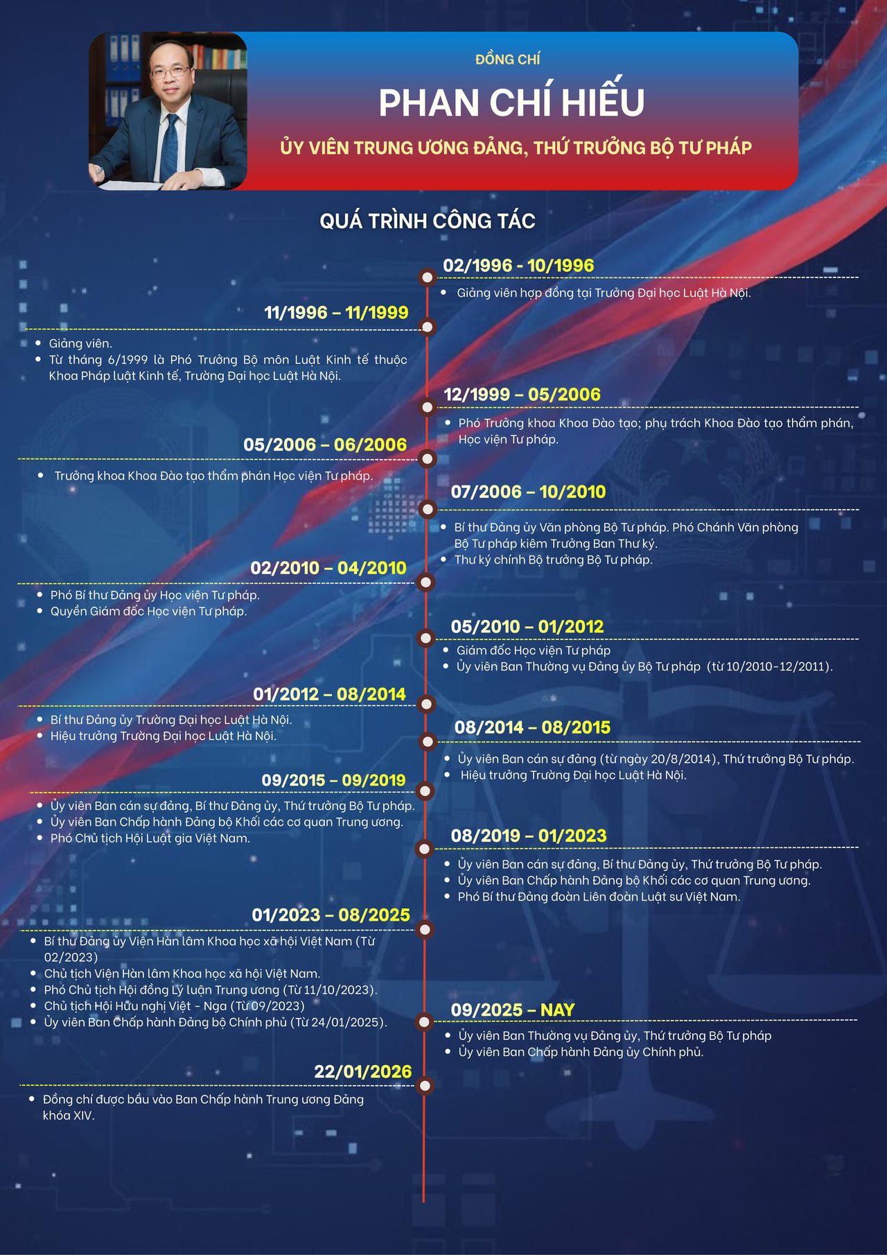 Quá trình công tác của Đồng chí Phan Chí Hiếu, Ủy viên Ban chấp hành Trung ương Đảng, Thứ trưởng Bộ Tư pháp.