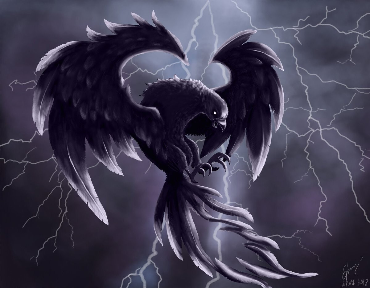 Thường phục vụ phù thủy. Truyền thuyết kể rằng Impundulu trung thành với các pháp sư, giúp họ triệu hồi mưa và bão. Ảnh: Pinterest.