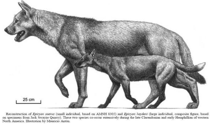 Loài này tuyệt chủng khi khí hậu thay đổi và cạnh tranh tăng cao. Sự xuất hiện của mèo răng kiếm và chó sói hiện đại khiến Epicyon dần biến mất. Ảnh: Pinterest.