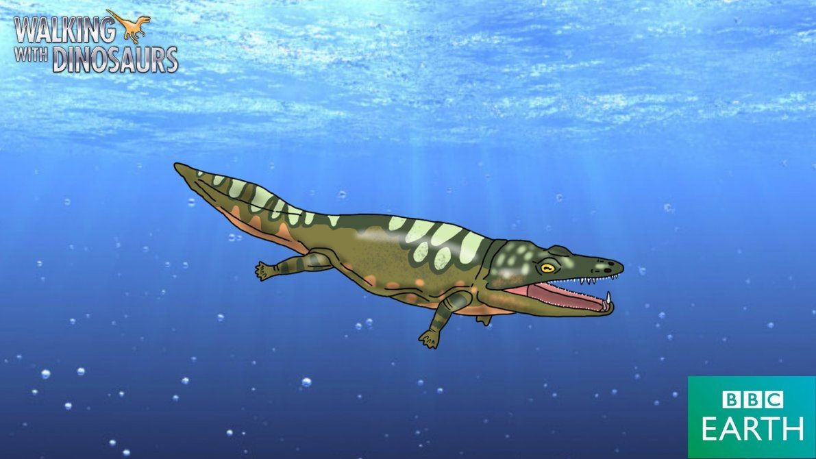 Dài tới 6 mét. Là loài lưỡng cư lớn nhất từng tồn tại, Mastodonsaurus có cơ thể dài như một chiếc xe hơi và đầu chiếm gần 1/3 chiều dài. Ảnh: Pinterest.
