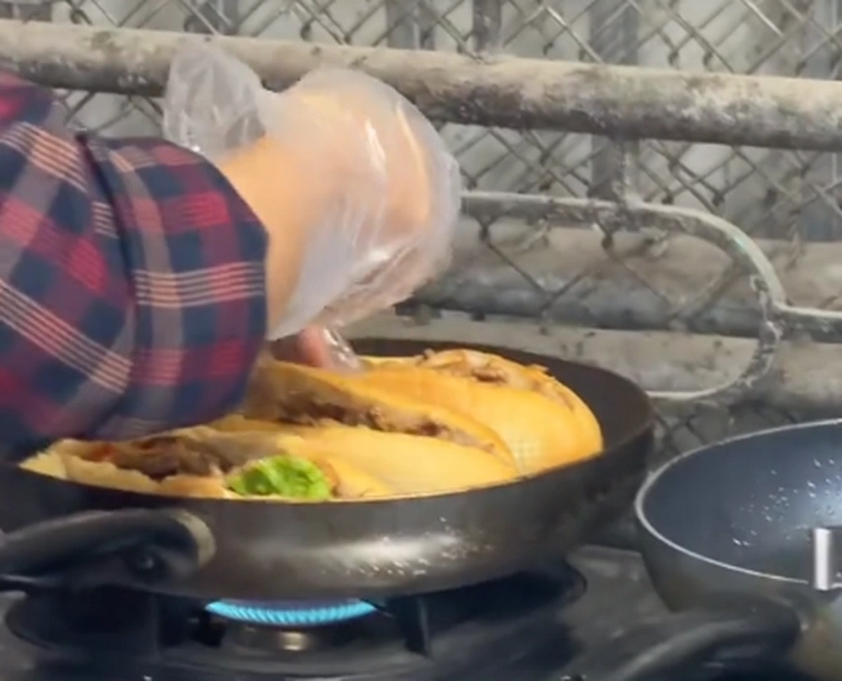 Trong lúc quay video lưu giữ kỷ niệm, nam du khách vô tình ghi lại hình ảnh một nữ nhân viên đang ăn dở đồ ăn, sau đó cho thức ăn từ miệng ra tay rồi gạt xuống chảo đang chế biến bánh mỳ cho khách. Dường như nhân viên này không biết mình đang bị ghi hình nên hành động diễn ra rất nhanh.