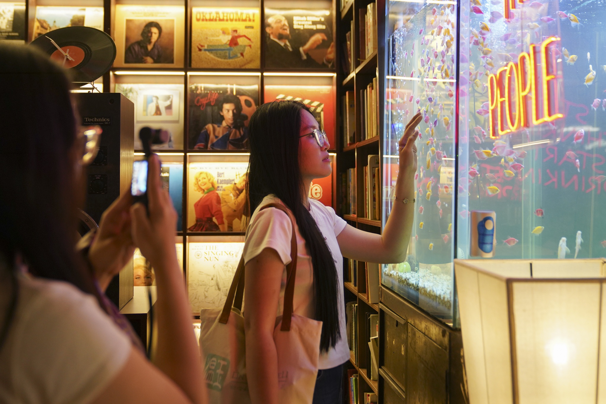 Hồng Bích (phường Thủ Đức, TP.HCM) đến quán theo lời rủ rê của bạn. "Quán trang trí rất đẹp, những chiếc đĩa than được sưu tầm đều là hàng hiếm. Tôi cũng khá thích cách các bạn DJ chơi nhạc, không khí rất chill", Bích chia sẻ với Tri Thức - Znews. Tuy nhiên, cô cho biết sẽ không quay lại vì quán thường quá đông, nhiều người chỉ đến chụp ảnh nên khó có thể thật sự thư giãn và tận hưởng âm nhạc.