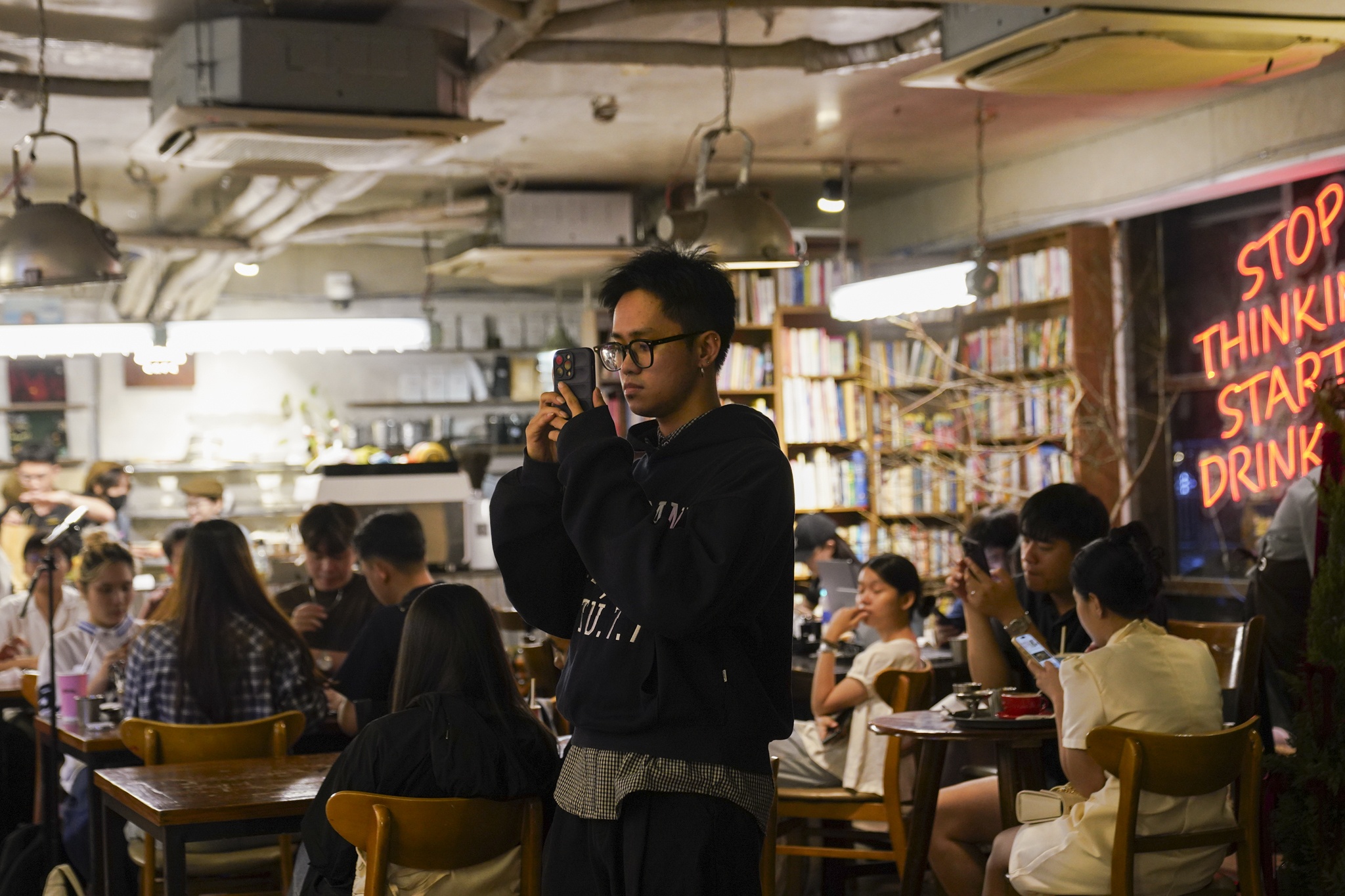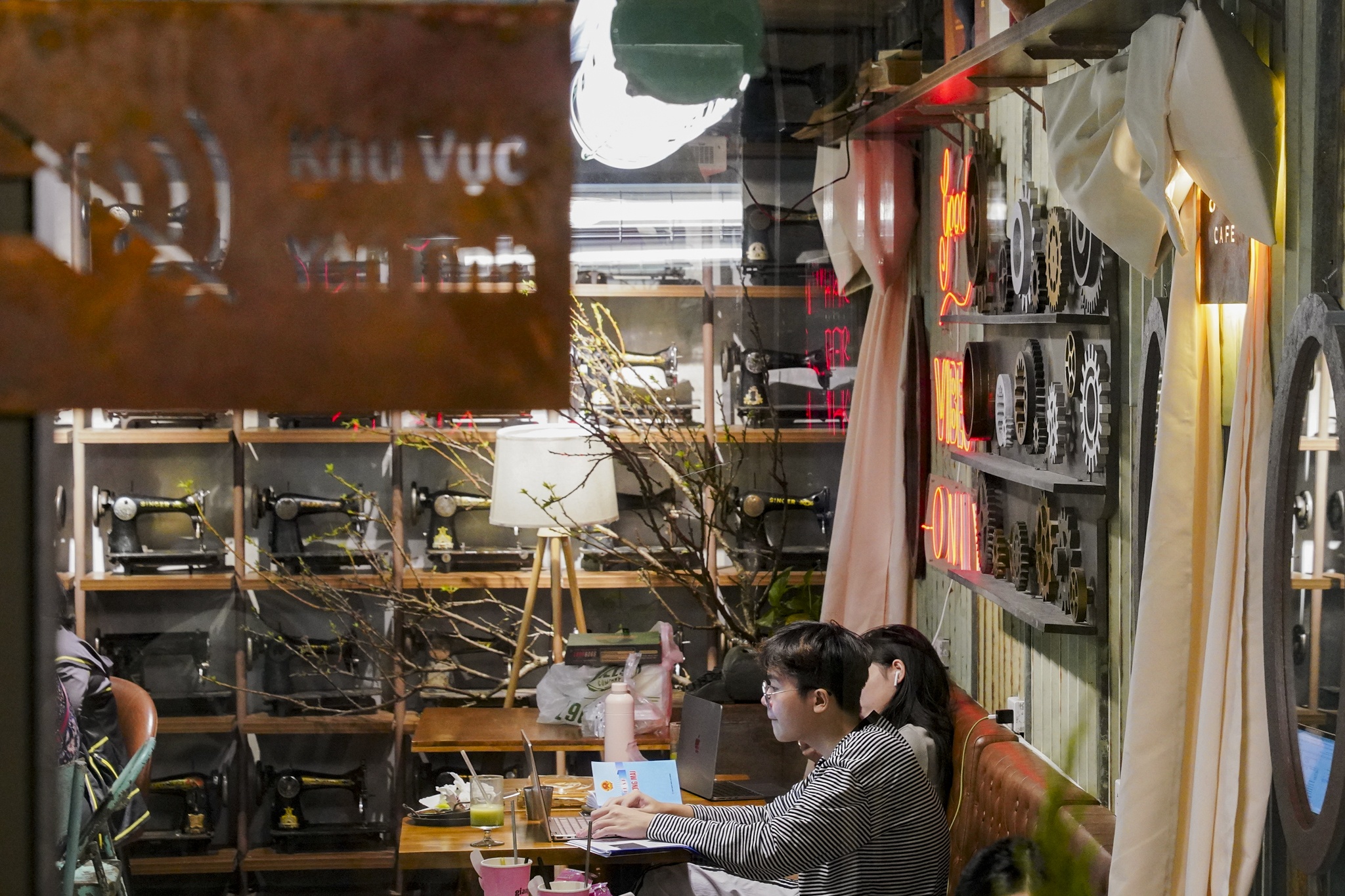 Bên cạnh những vị khách đến chụp ảnh check-in, quán vẫn thu hút nhiều bạn trẻ đến thưởng thức đồ uống, làm việc hay thư giãn trong căn phòng riêng yên tĩnh - nơi tràn ngập âm thanh du dương, ấm áp từ những chiếc đĩa than.